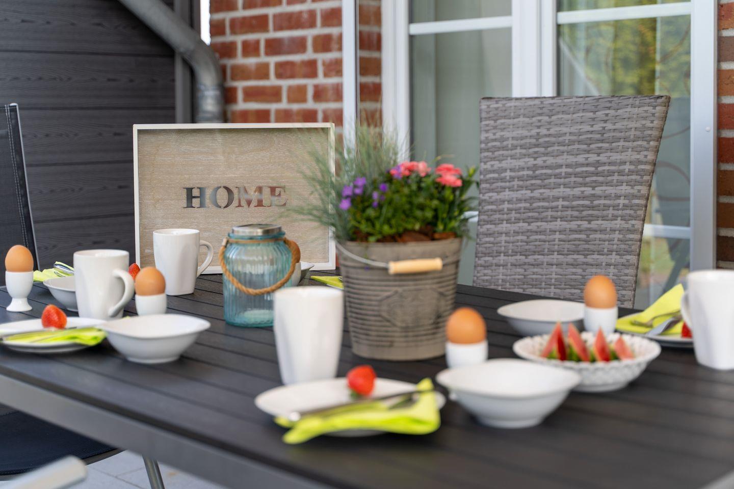Ein besonderes Highlight der Wohnung ist die sonnige Terrasse, auf der Sie den Tag bei einem gemütlichen Frühstück im Freien starten oder einfach nur die Seele baumeln lassen können. Der Blick auf die Umgebung und die Nähe zur Natur sorgen für ein unvergleichliches Gefühl von Freiheit und Entspannung.