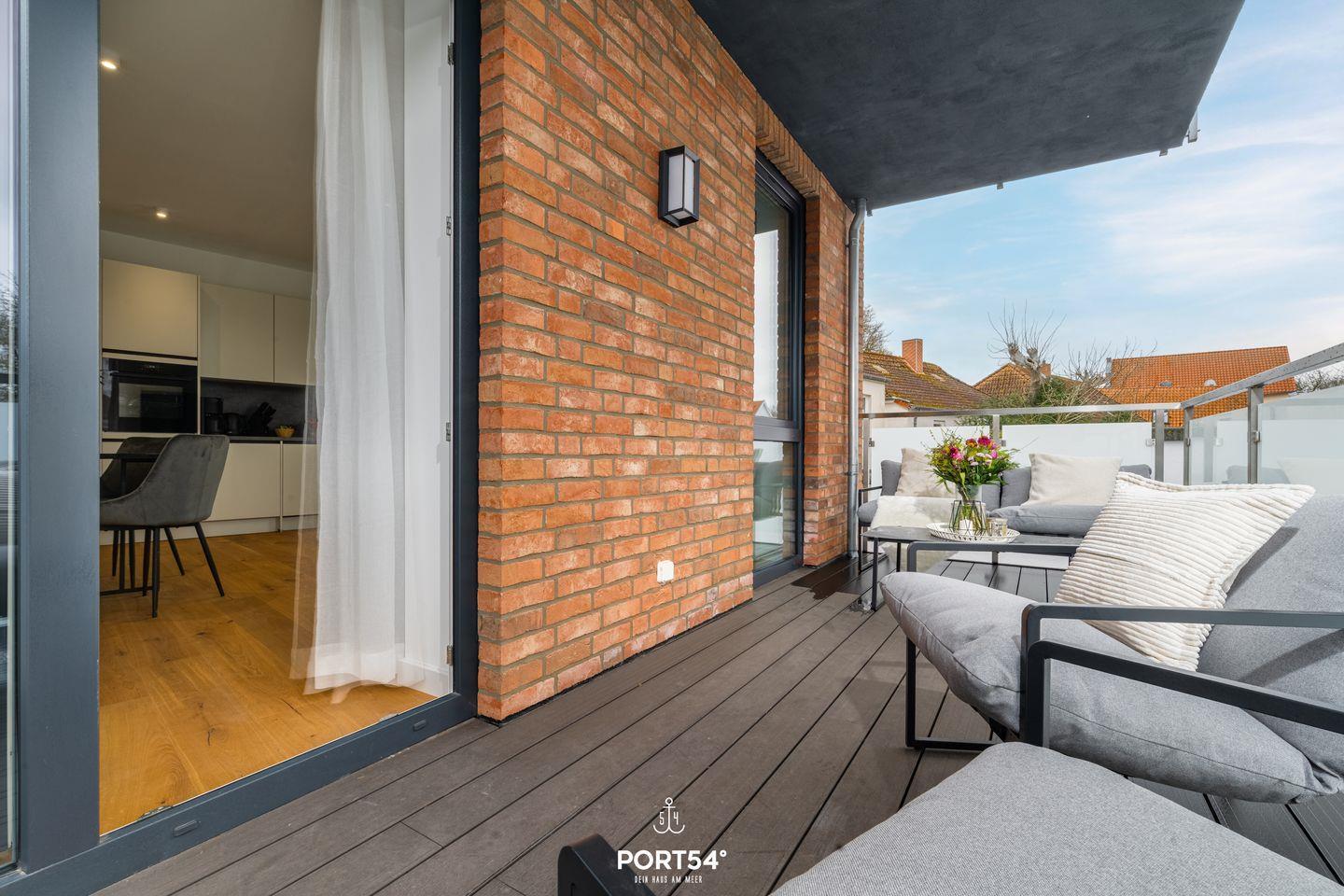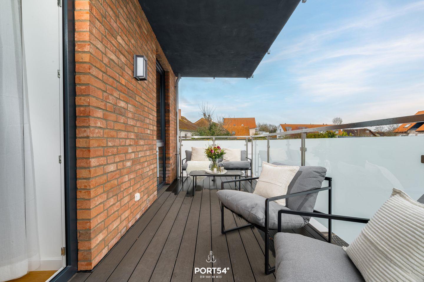 Von der Wohnung aus gelangen Sie direkt auf den Balkon, wo Sie die frische Meeresluft und den Blick auf die Umgebung genießen können. Die ruhige Lage der Wohnung sorgt für eine entspannte Atmosphäre. Dank der Innenstadtlage sind Einkaufsmöglichkeiten, Restaurants und Cafés nur wenige Schritte entfernt, während der feinsandige Strand nur 500 Meter entfernt ist. Hier können Sie entspannte Tage in der Sonne, lange Strandspaziergänge oder aufregende Wassersportarten wie Windsurfen und Segeln verbringen.