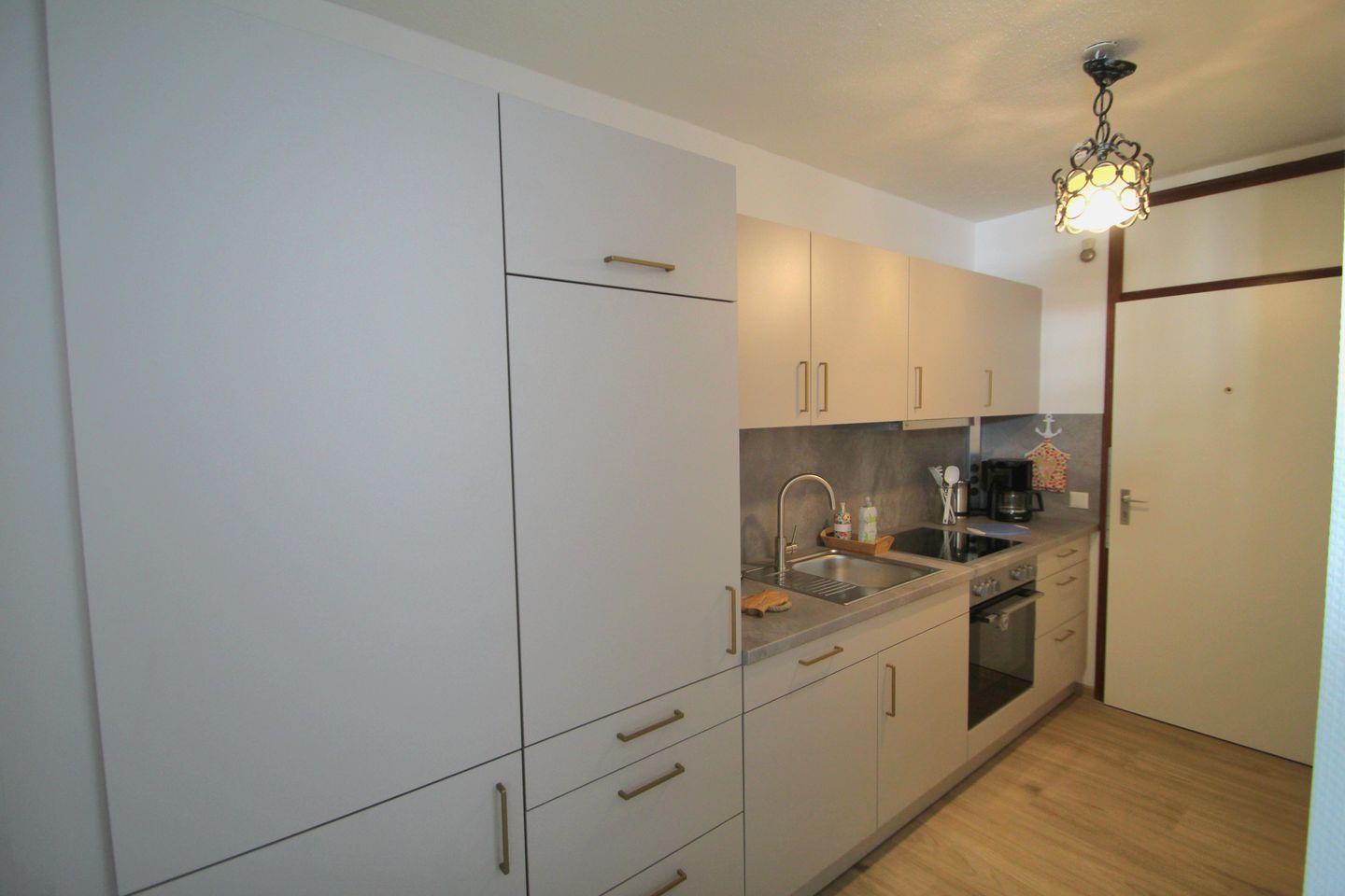 Besonders angenehm ist der wohnungseigene Balkon, der nicht nur einen Rückzugsort im Freien bietet, sondern auch den Seeblick und die Eindrücke der Umgebung erlebbar macht. Die Kombination aus Meer- und Gartenblick schafft ein einladendes Ambiente für erholsame Stunden unter freiem Himmel.