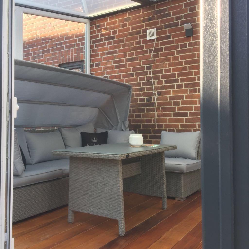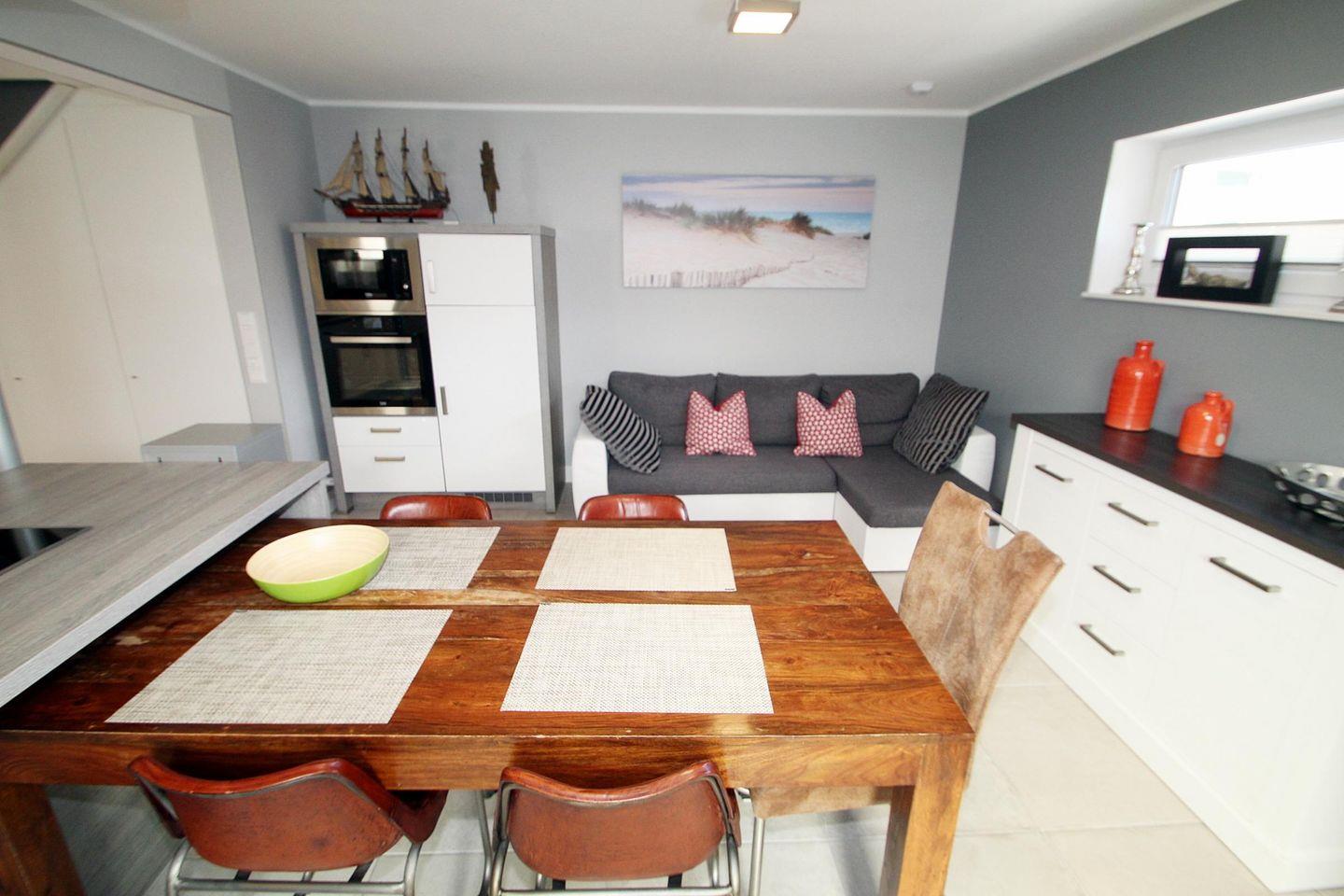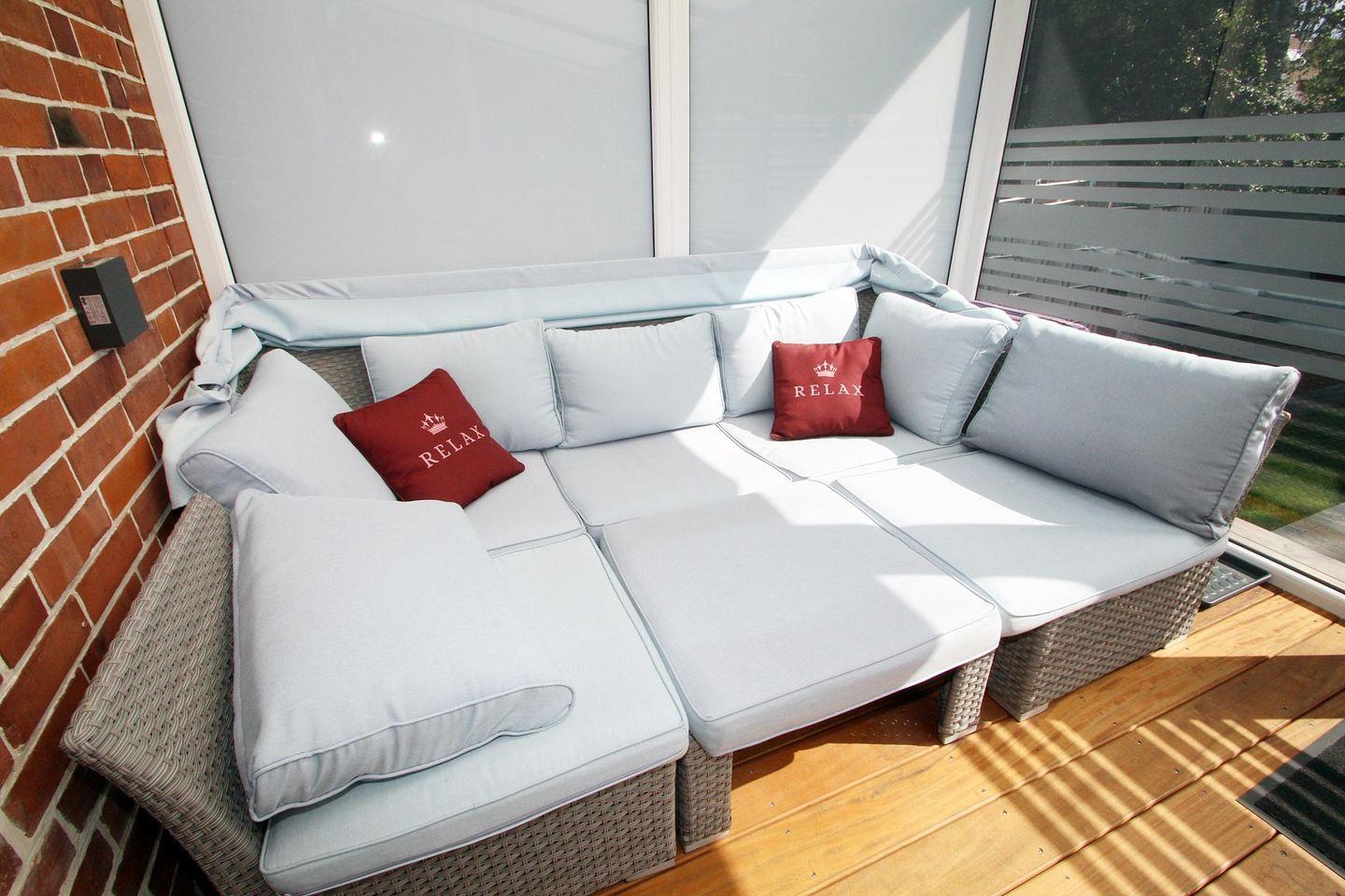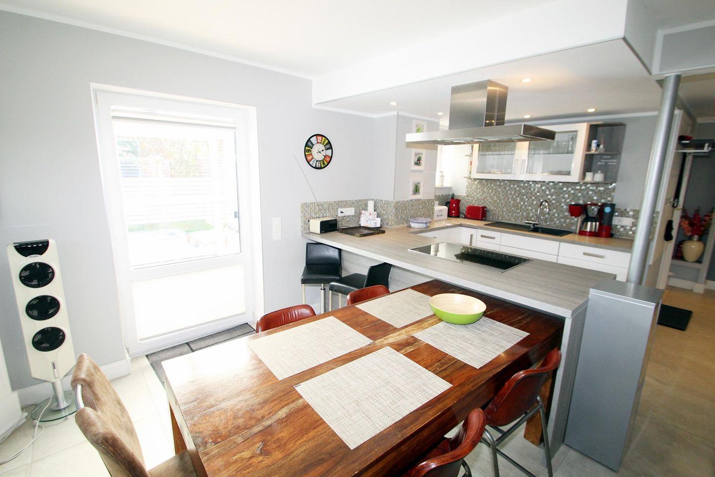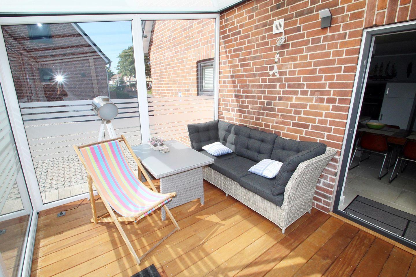 Vom Küchen- und Essbereich haben Sie Zugang zum Wintergarten mit Strandkorb und weiteren Sitzgelegenheiten.