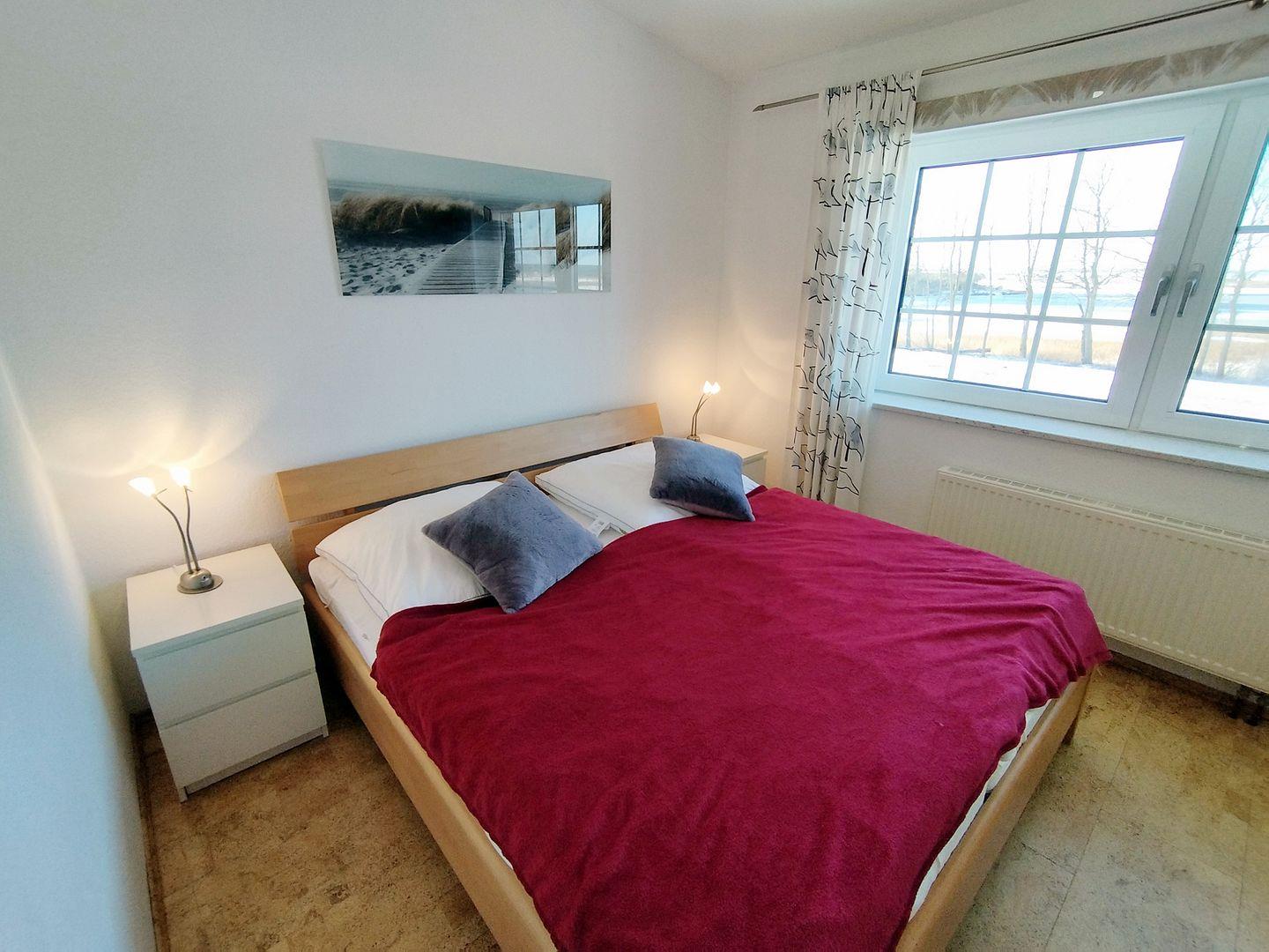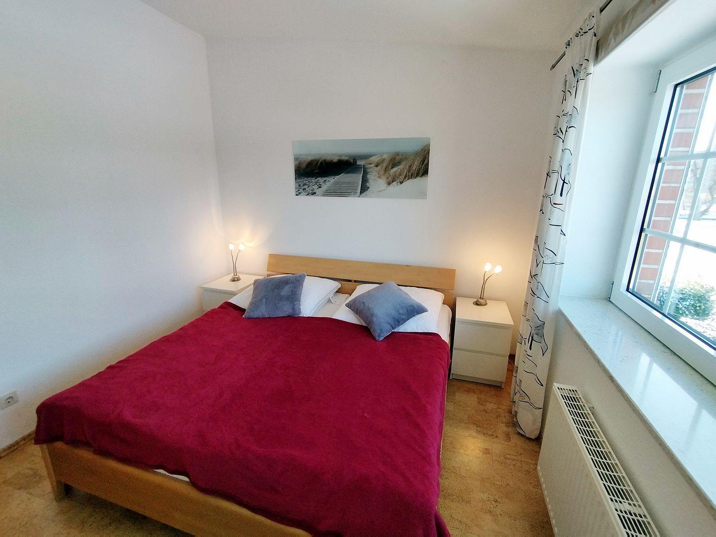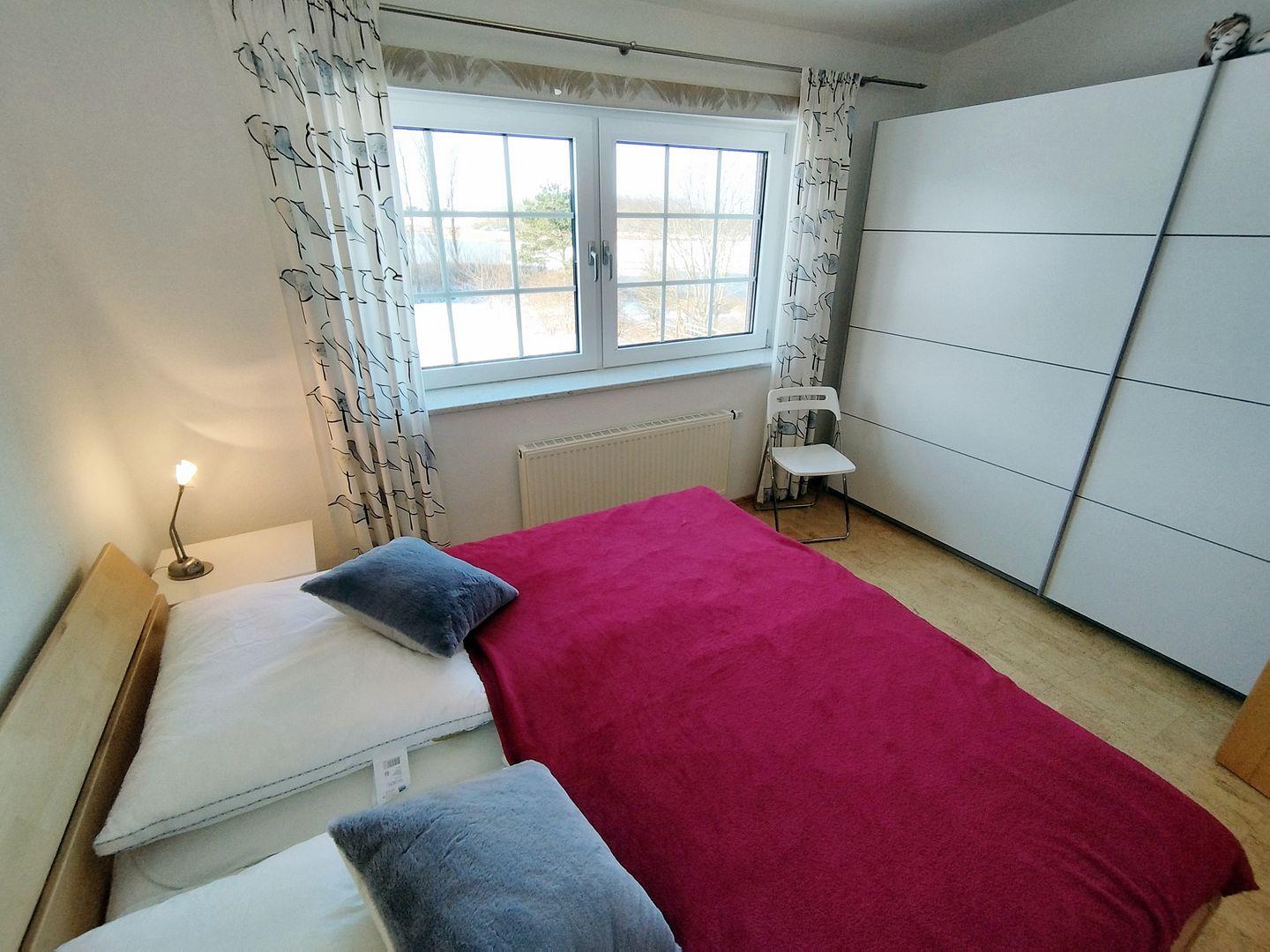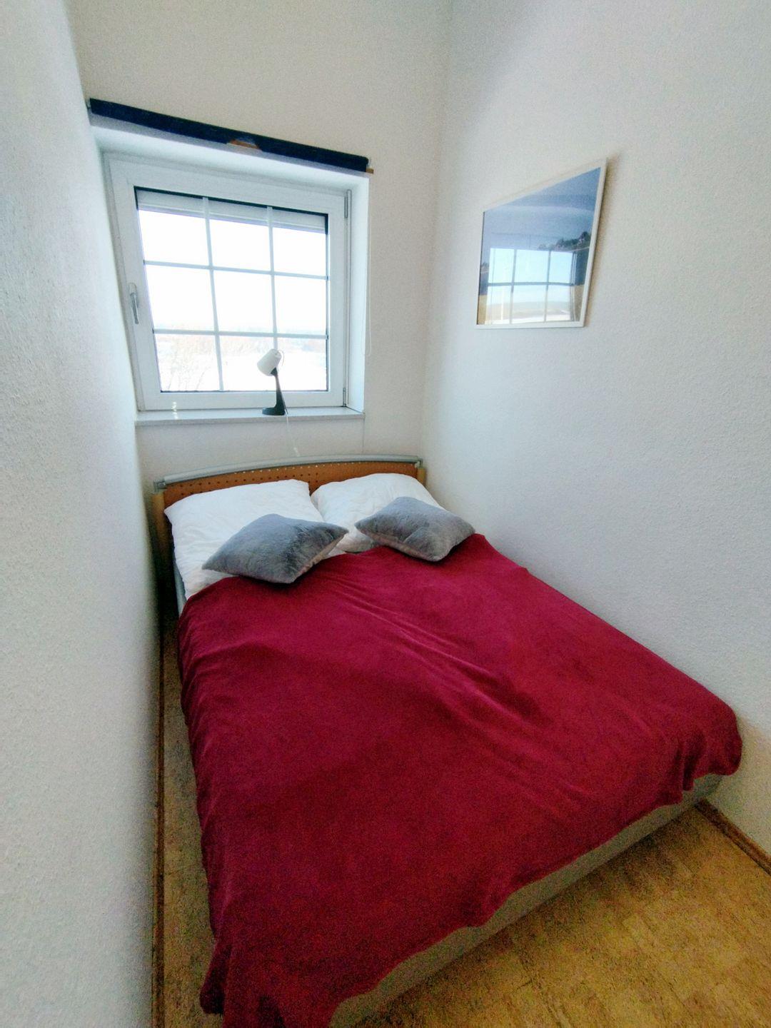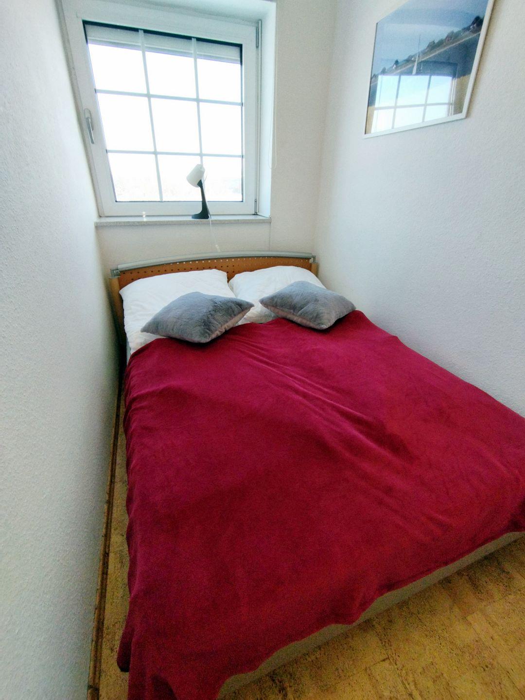 Im weiteren Schlafzimmer steht ein Doppelbett (120*200 cm) sowie ein Kleiderschrank für weitere Gäste parat. Die Böden von Schlafzimmern und Flur sind mit fußwarmen Korkboden ausgelegt.