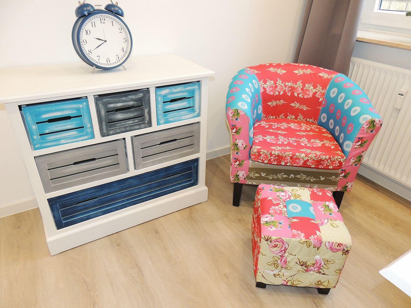 Im Wohnbereich befindet sich, durch eine 3/4-Wand abgetrennt, der Schlafbereich mit Doppelbett mit zwei einzelnen Matratzen (Größe 90*200 cm). Die Steckdosen verfügen über einen USB-Anschluss zum Laden entsprechender Geräte.