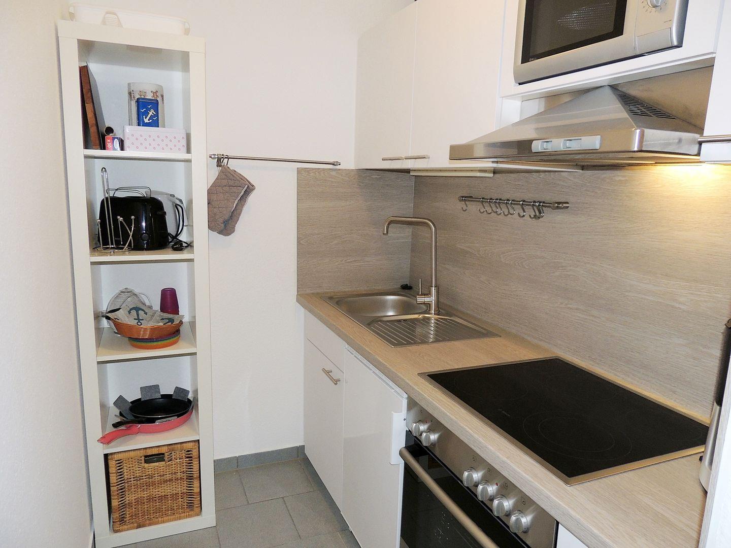 - Küchenzeile mit Ceranfeld/Backofen/Mikrowelle und Kühlschrank