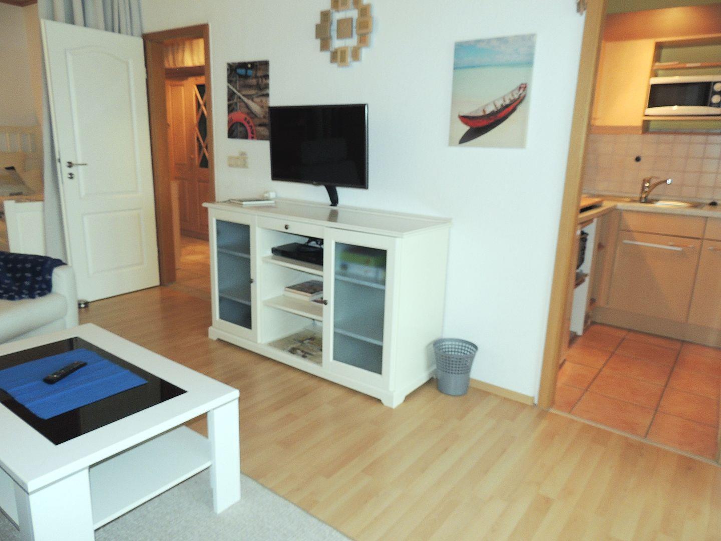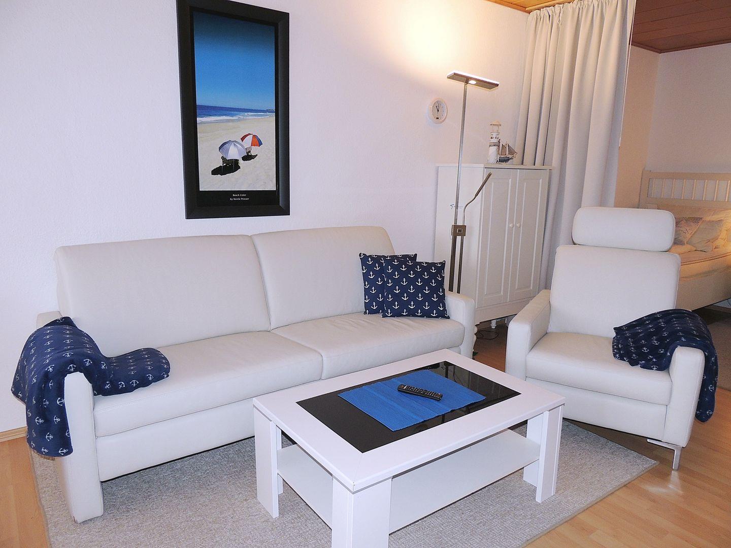 Im Wohnbereich selber sorgt eine neue Couchgarnitur für Entspannung. Für die Unterhaltung sorgen ein Flachbild-TV und DVD-Player. Kostenloses WLAN ist in dieser Wohnung ebenfalls vorhanden.