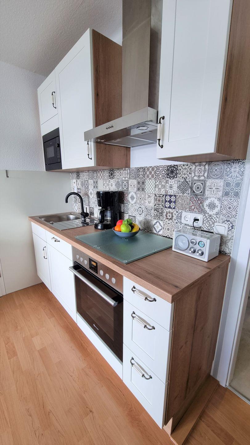 Das liebevoll eingerichtete Apartment bietet neben zwei Schlafzimmern – eines davon mit bequemem Doppelbett – ein gemütliches Wohn-Esszimmer mit gut ausgestatteter Küchenzeile und einen Südbalkon. Auf den gemütlichen 43 m2 findet eine Familie mit vier Personen Platz, Hunde sind ebenfalls willkommen.
