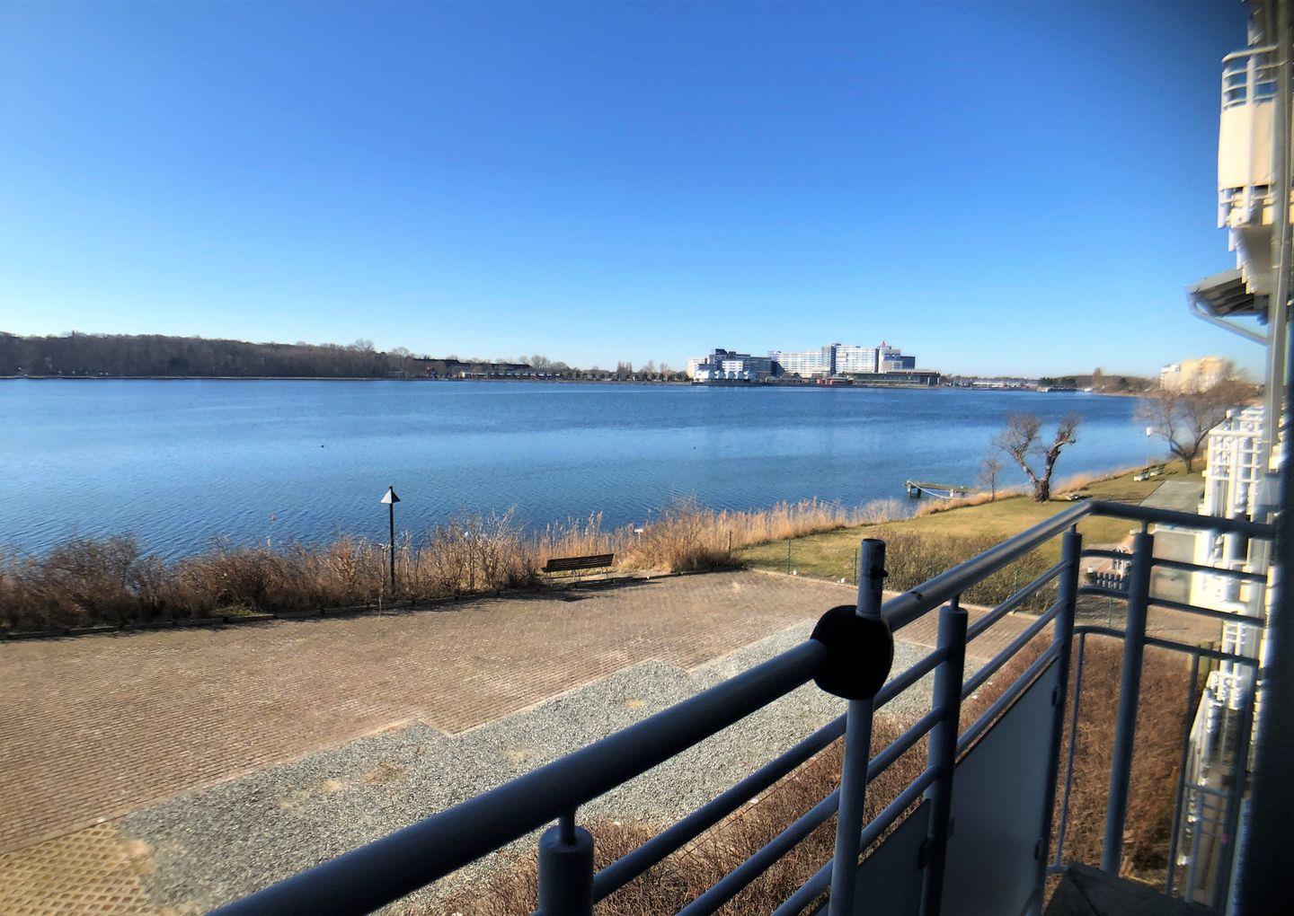 Von hier erreichen Sie den möblierten Balkon mit herrlichem Blick auf den See auf dem Sie von mittags bis abends die Sonne genießen können. Ein Sonnenschirm sorgt auf Wunsch für Schatten.