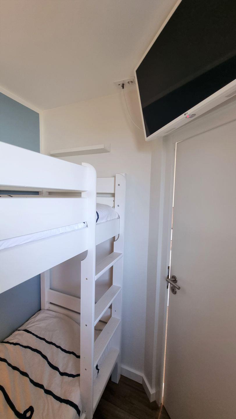 Das separate Kinderzimmer mit Etagenbett (2 x 80*190) und eigenem Fernseher (80 cm Durchmesser) lässt die Kleinen gut schlafen (ebenfalls verdunkelbar mit elektrischen Rolläden). Auch ein Kinderhochstuhl kann kostenfrei genutzt werden.