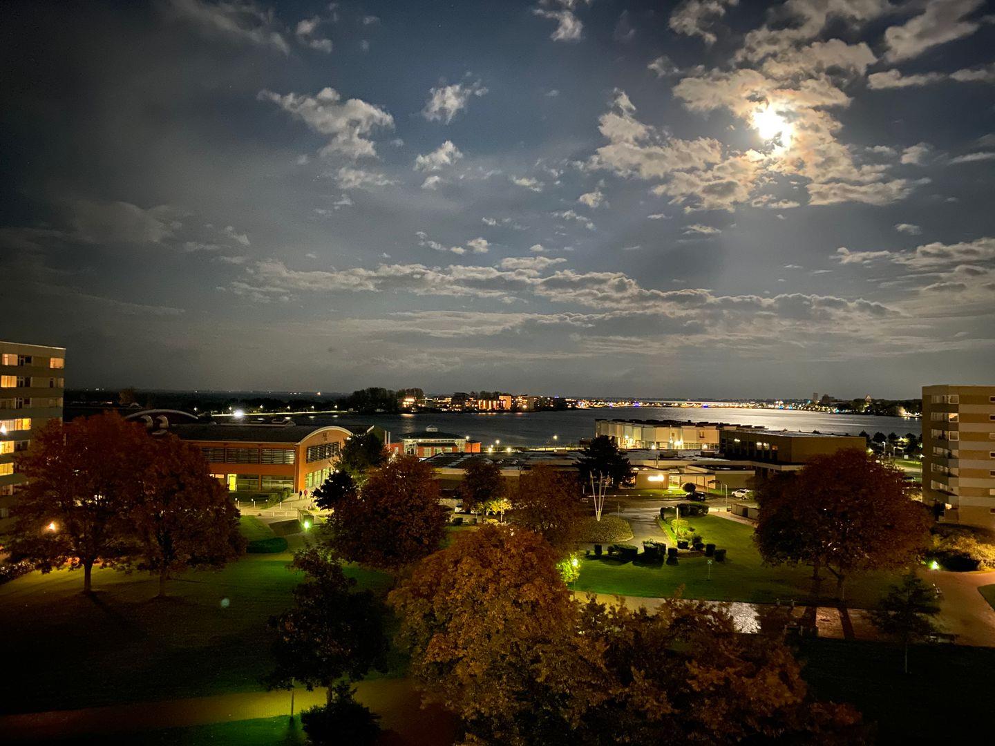Der Essbereich befindet sich am großen Panoramafenster mit Meer- und Seeblick.