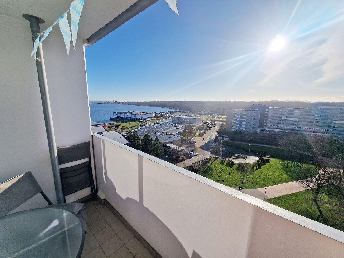 Der Balkon zeigt zur Südseite mit Blick zum Binnensee.