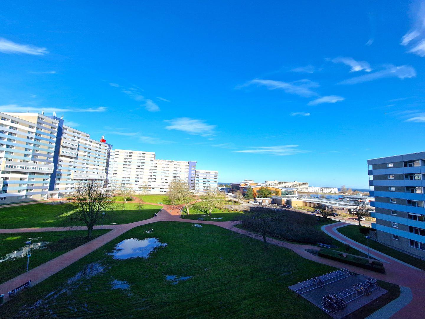 Renovierte und helle Ferienwohnung in der 4. Etage mit Balkon zur Nordseite und etwas Seeblick.