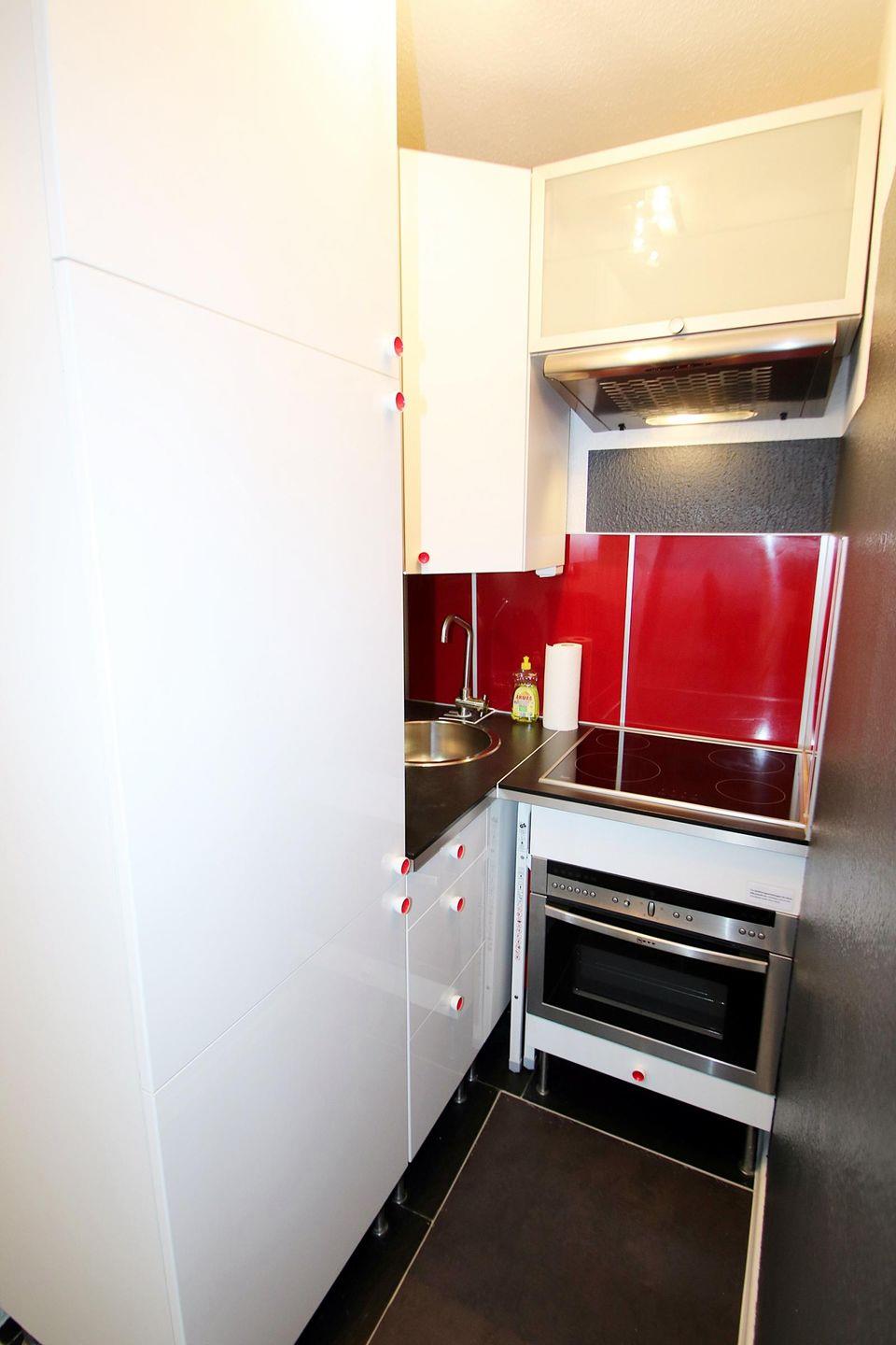 Die Küchenzeile ist ausgestattet mit einem Ceranfeld, Backofen/Mikrowellen-Kombi.