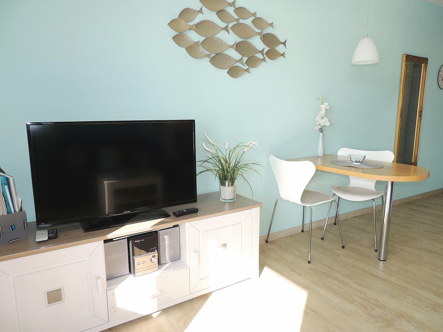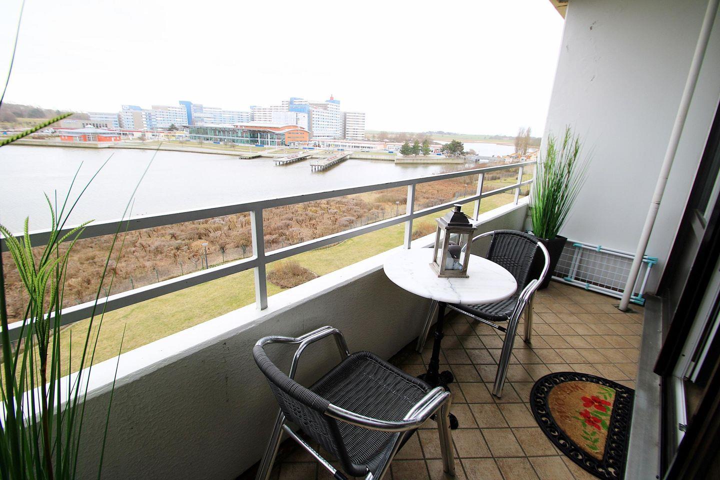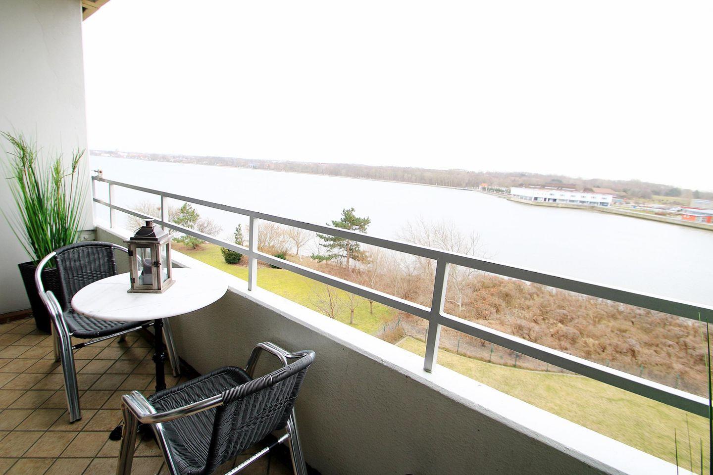 Helle und harmonisch aufeinander abgestimmte Ferienwohnung in der 4. Etage mit Balkon zur Südseite und Blickrichtung über den Binnensee.