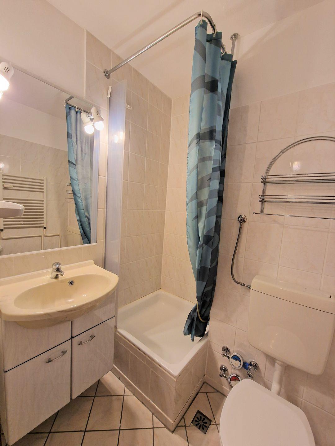 Bad mit Dusche und WC.