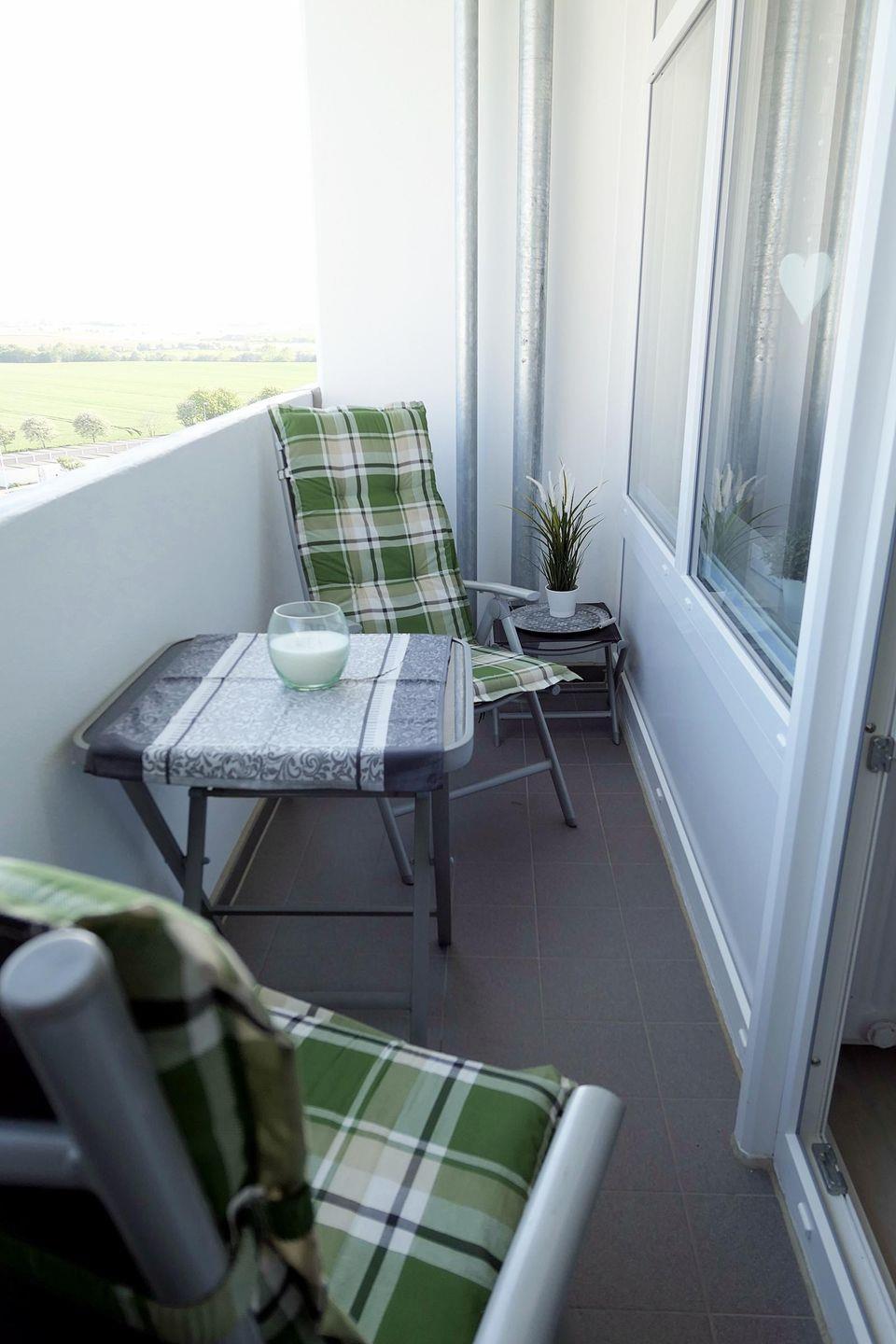 Ferienwohnung in der 7. Etage mit Balkon zur Südseite und weitem Blick über die Wiesen und Felder Heiligenhafens.