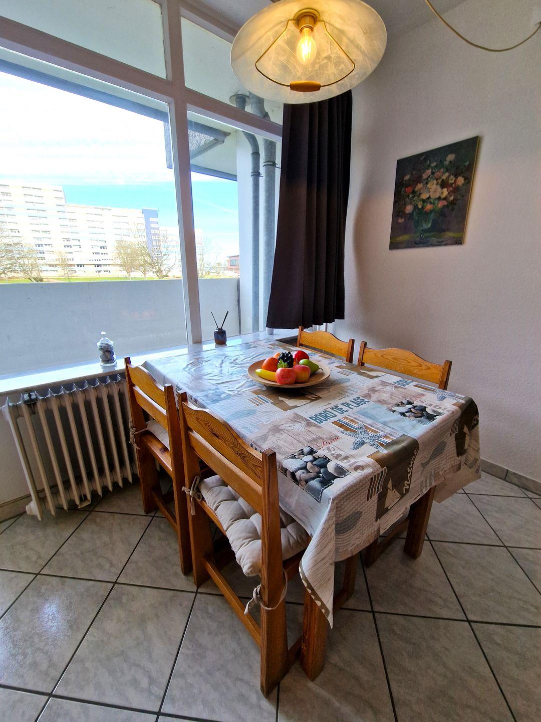 Die Essecke befindet sich direkt am Fenster.