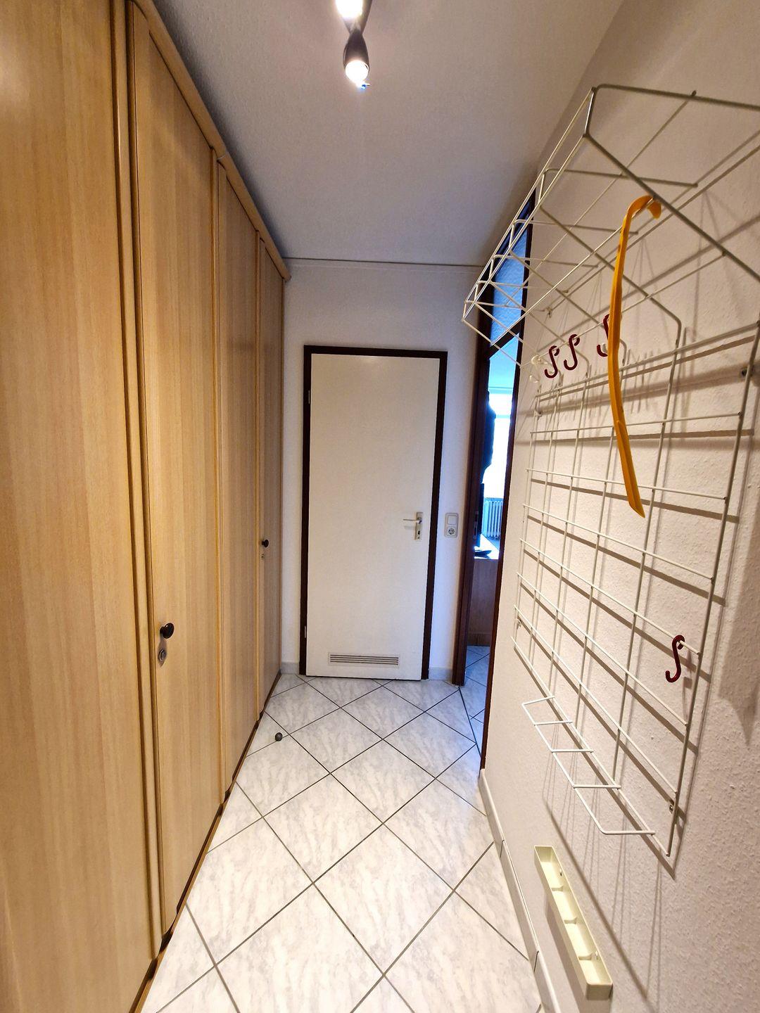 Helle, freundliche und komplett geflieste Wohnung in der 1. Etage mit Balkon zur Nordseite mit Blick ins Grüne und in den Innenhof.