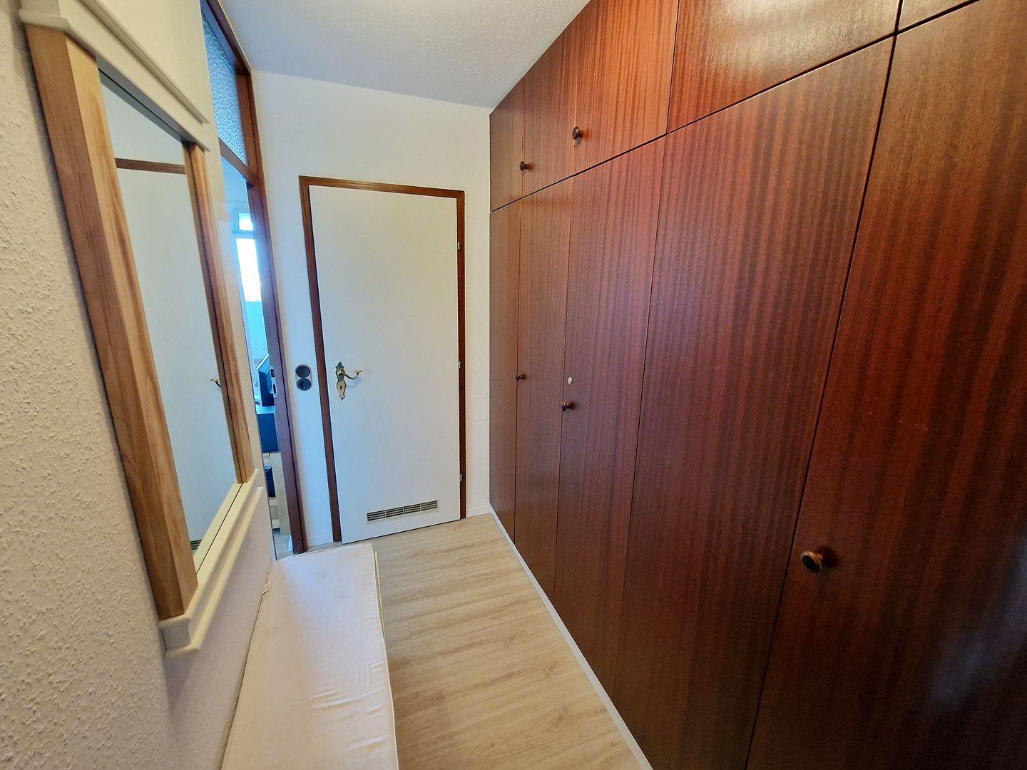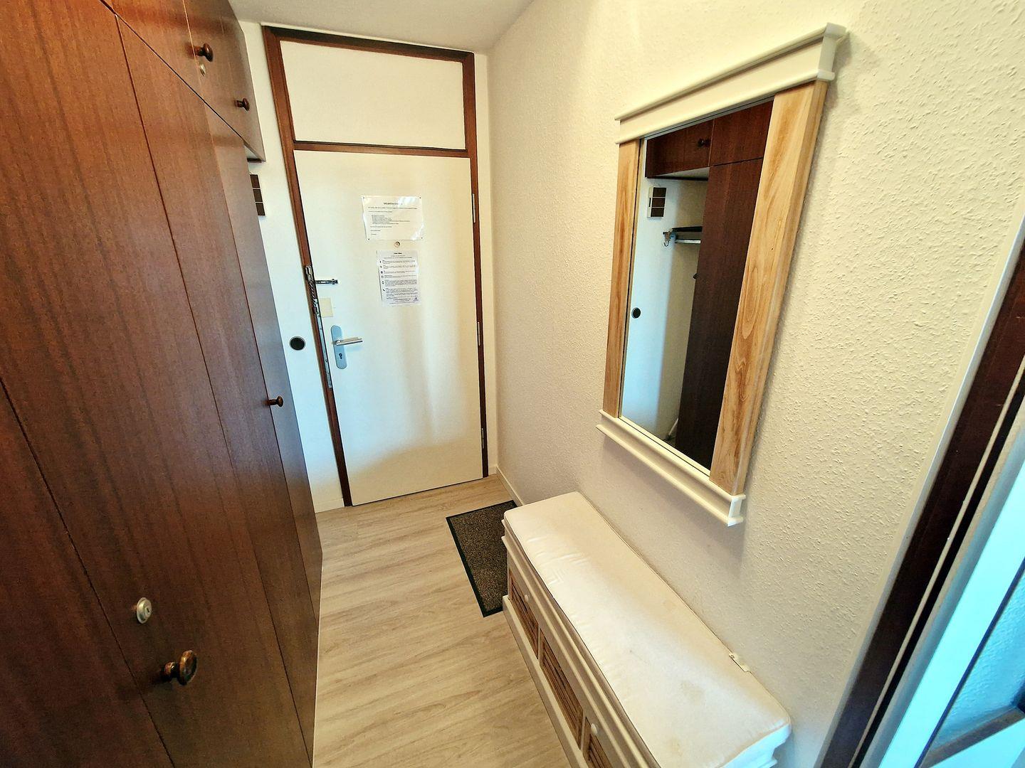Die helle, mit pflegeleichtem Laminat ausgelegte, in warmen Farben eingerichtete 1-Zimmer-Wohnung teilt sich in Flur, Duschbad und Wohnbereich auf.