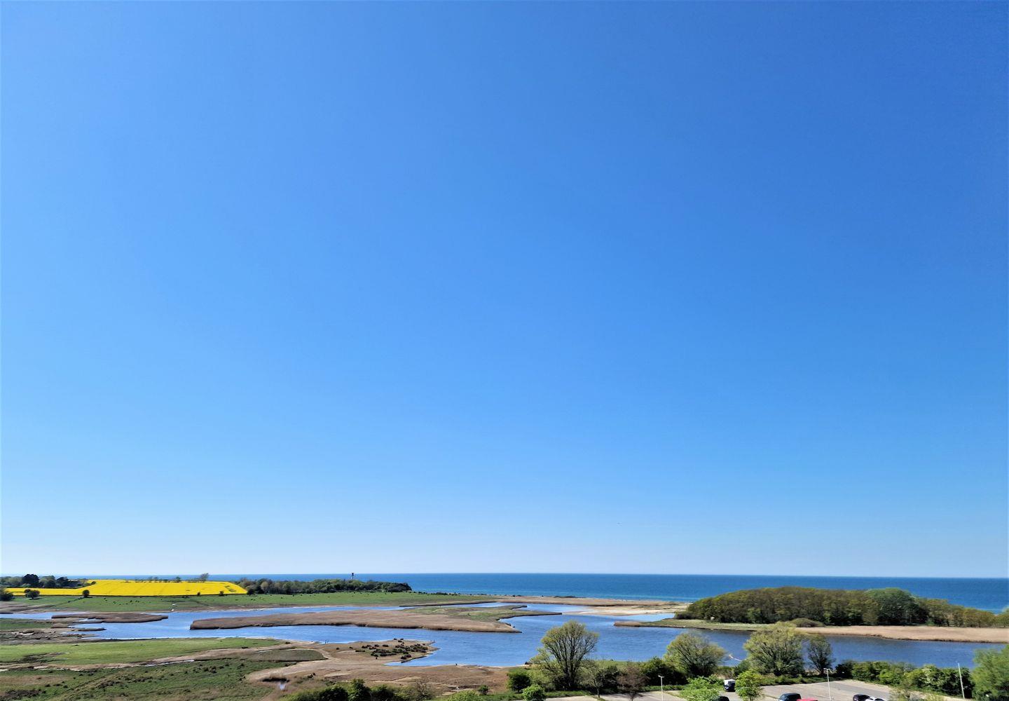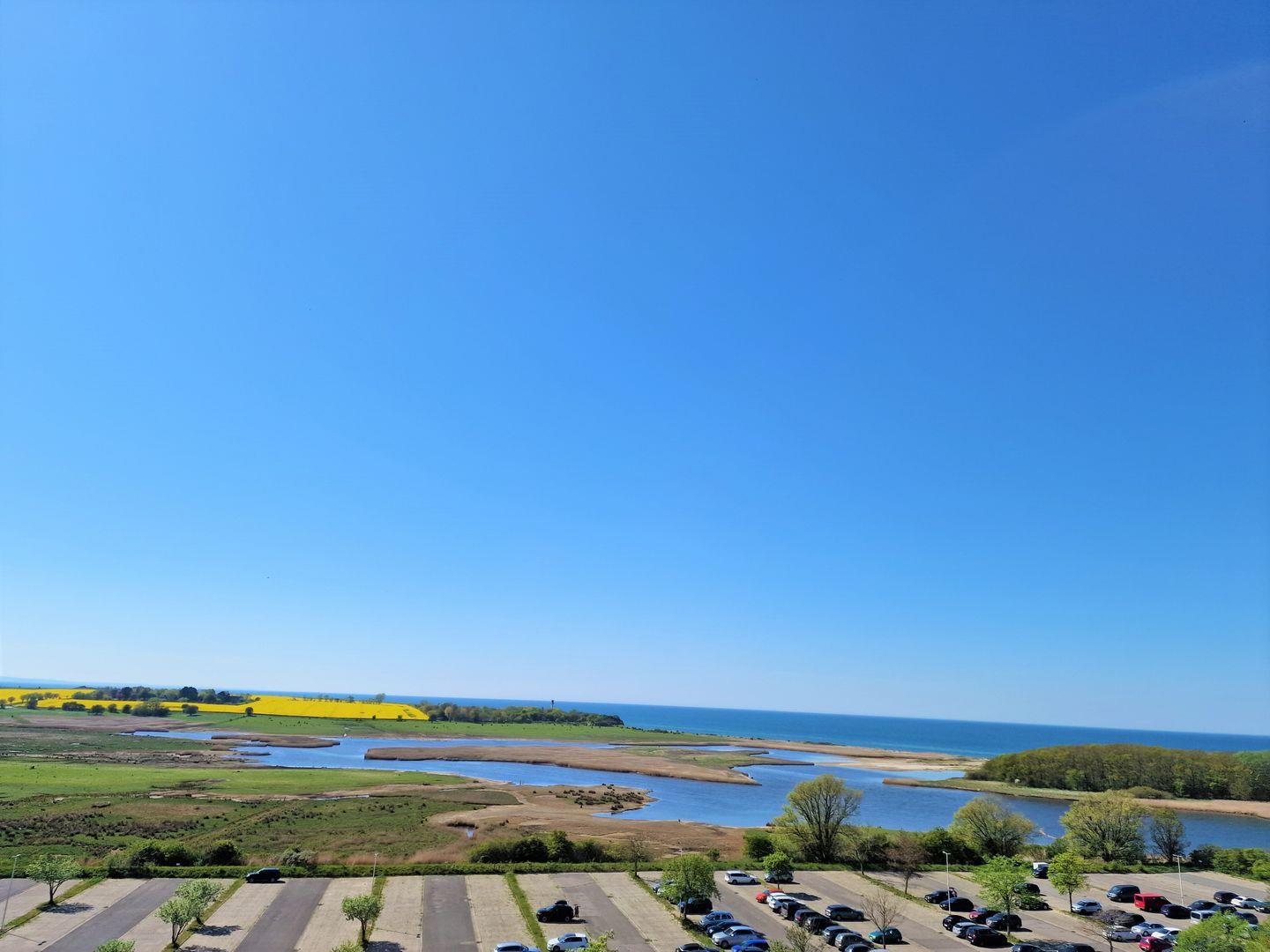 Sonnige und freundlich ausgestattete Wohnung in der 8. Etage mit Balkon zur Westseite mit herrlichem Seeblick über das Naturschutzgebiet in Richtung Leuchtturm/Ostsee.