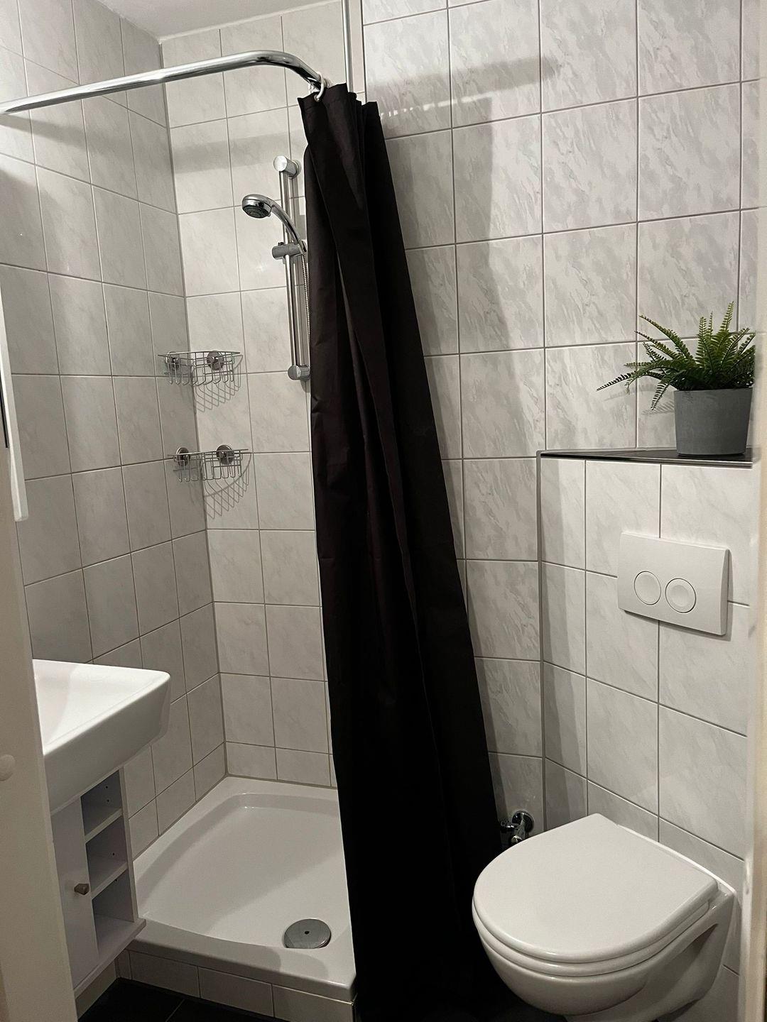 Das moderne, innenliegende Duschbad lässt Sie mit beleuchtetem Spiegelschrank, Haartrockner, Duschwanne mit Duschvorhang und Handtuchheizkörper gut in den neuen Urlaubstag starten.