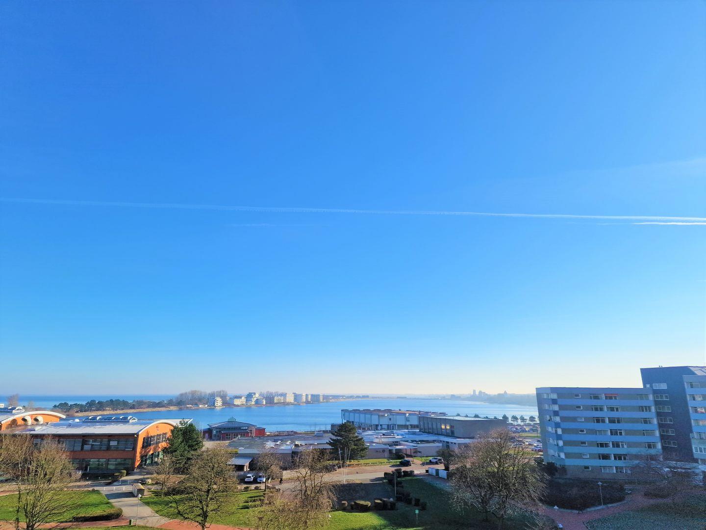 Genießen Sie hier den Blick über den Binnensee Richtung Ostsee und Yachthafen.