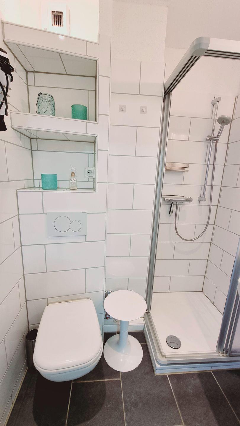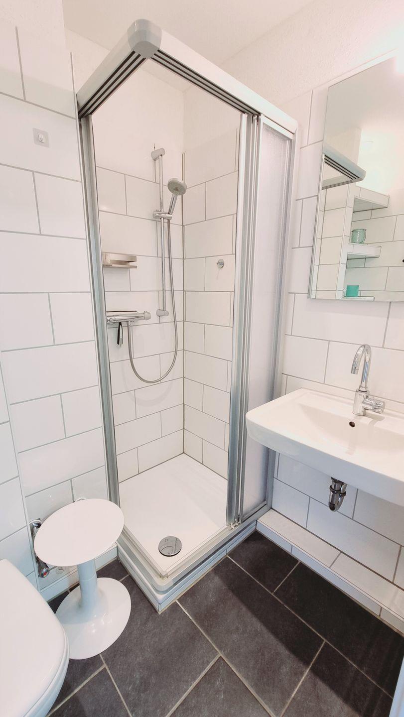 Neu renoviertes, modernes Badezimmer mit sehr niedrigem Einstieg, Duschkabine und Hänge-WC- einfach schick!!