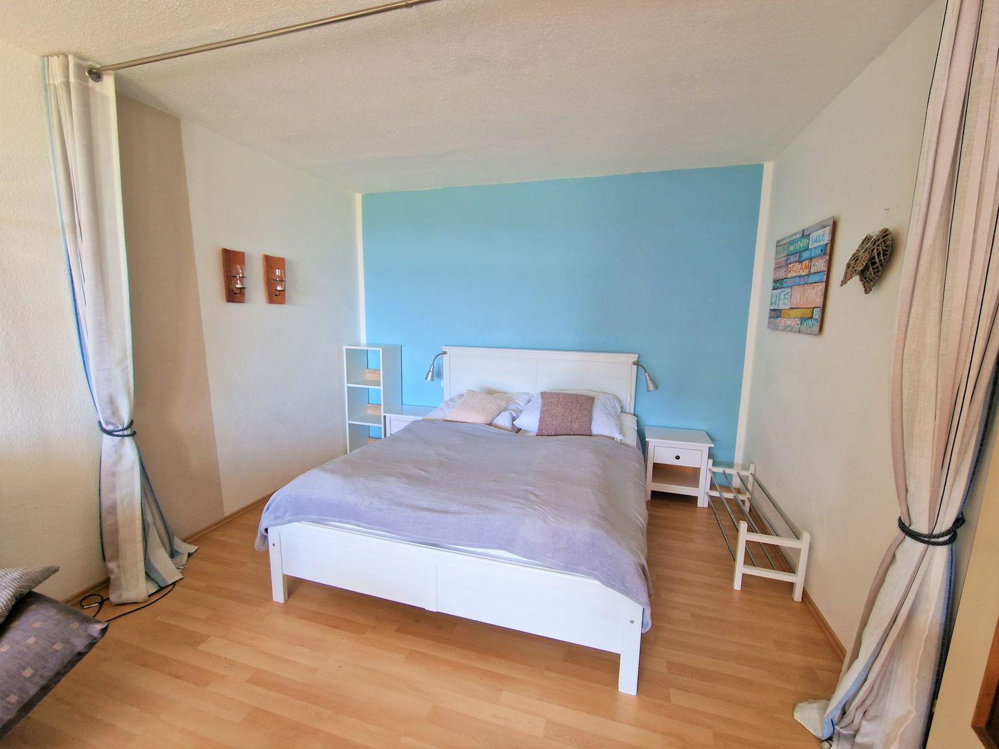 Der Schlafbereich ist offen zum Wohnbereich und verfügt über ein Doppelbett (160 x 200 cm - 2 Matratzen).