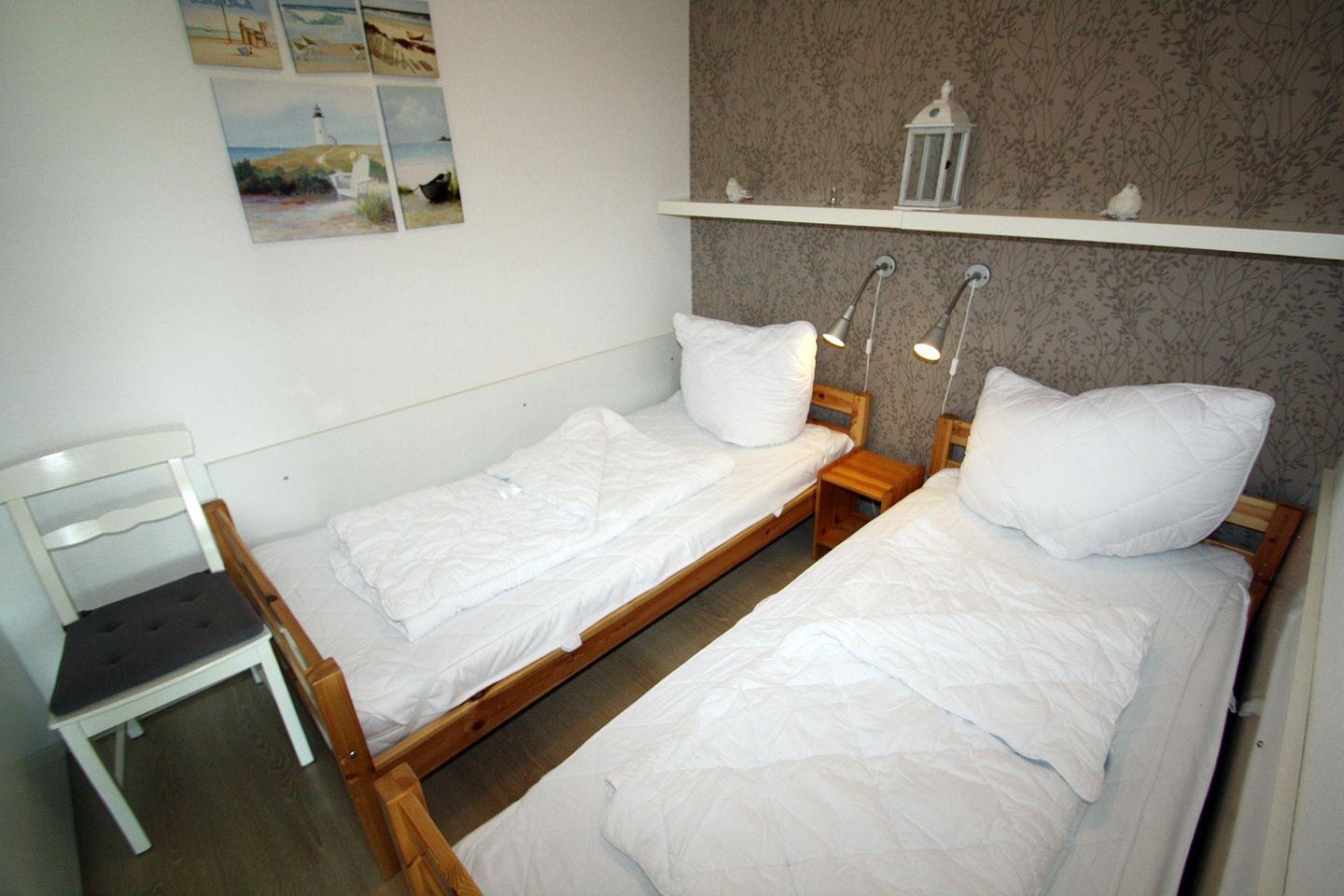 Schlafbereich mit zwei Einzelbetten.