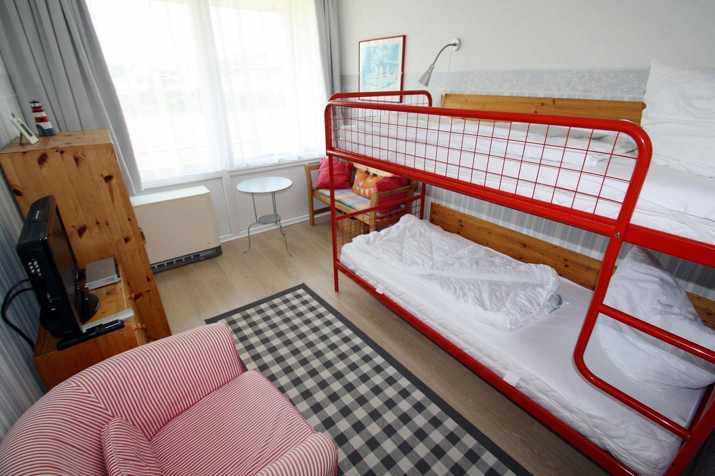 Kinderzimmer mit Etagenbetten + Smart-TV+DVD. Whg. komplett mit Laminat.