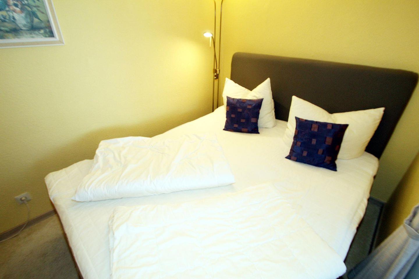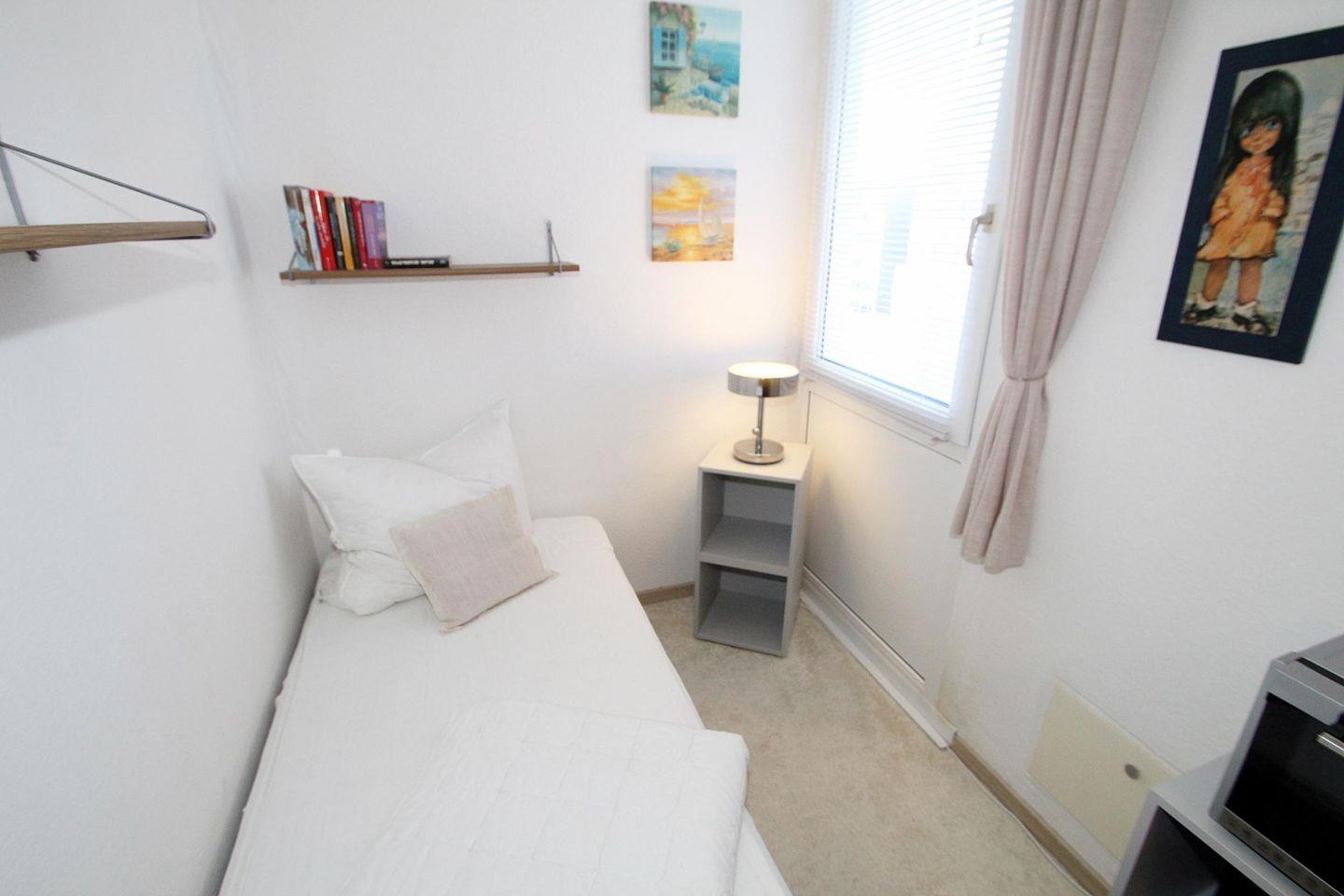 Das Schlafzimmer ist mit einem gemütlichen Teppichboden ausgestattet und bietet bequem Platz für erholsame Nächte. Hier finden Sie alles, was Sie brauchen, um am nächsten Morgen erfrischt und bereit für neue Abenteuer zu sein. Ein modernes Badezimmer mit Dusche und Badewanne sorgt für zusätzlichen Komfort und Raum zum Entspannen.