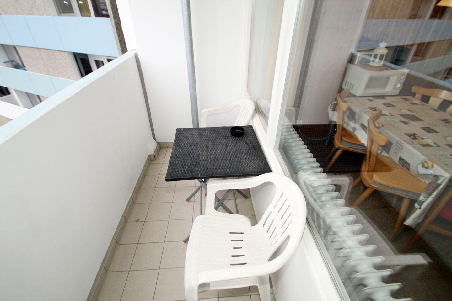 Freundlich eingerichtete Ferienwohnung mit pflegeleichtem Vinylboden in der 6. Etage und Balkon zur Ostseite.