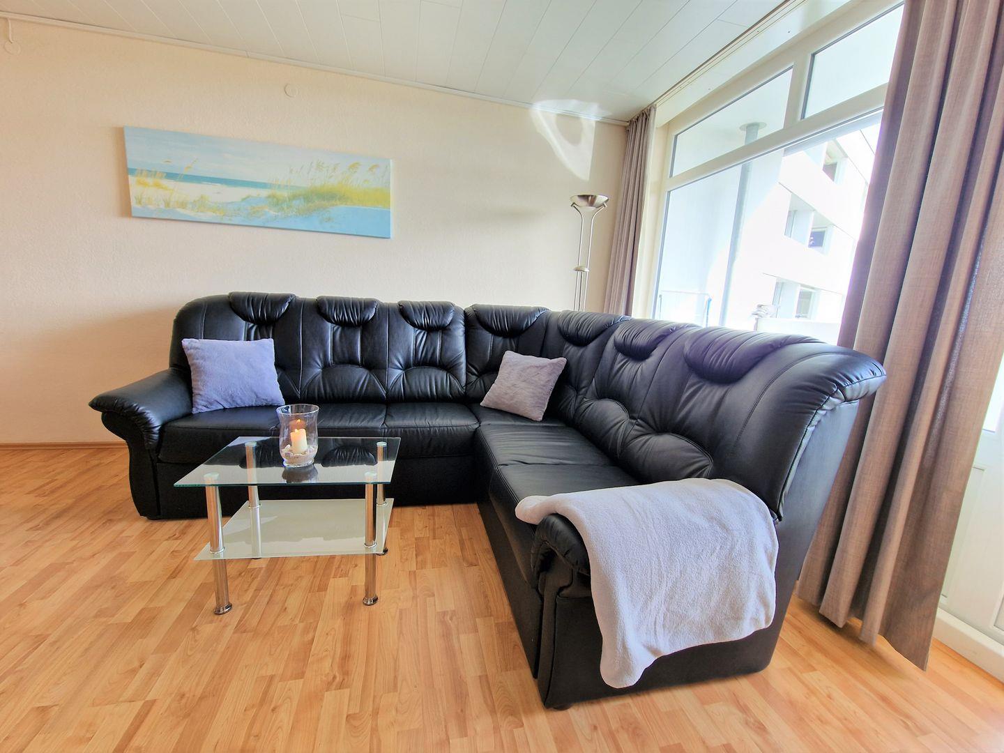 Moderne Ferienwohnung mit Wohn- Schlaf- und Kinderzimmer. Die gesamte Wohnung ist mit Laminat ausgelegt.