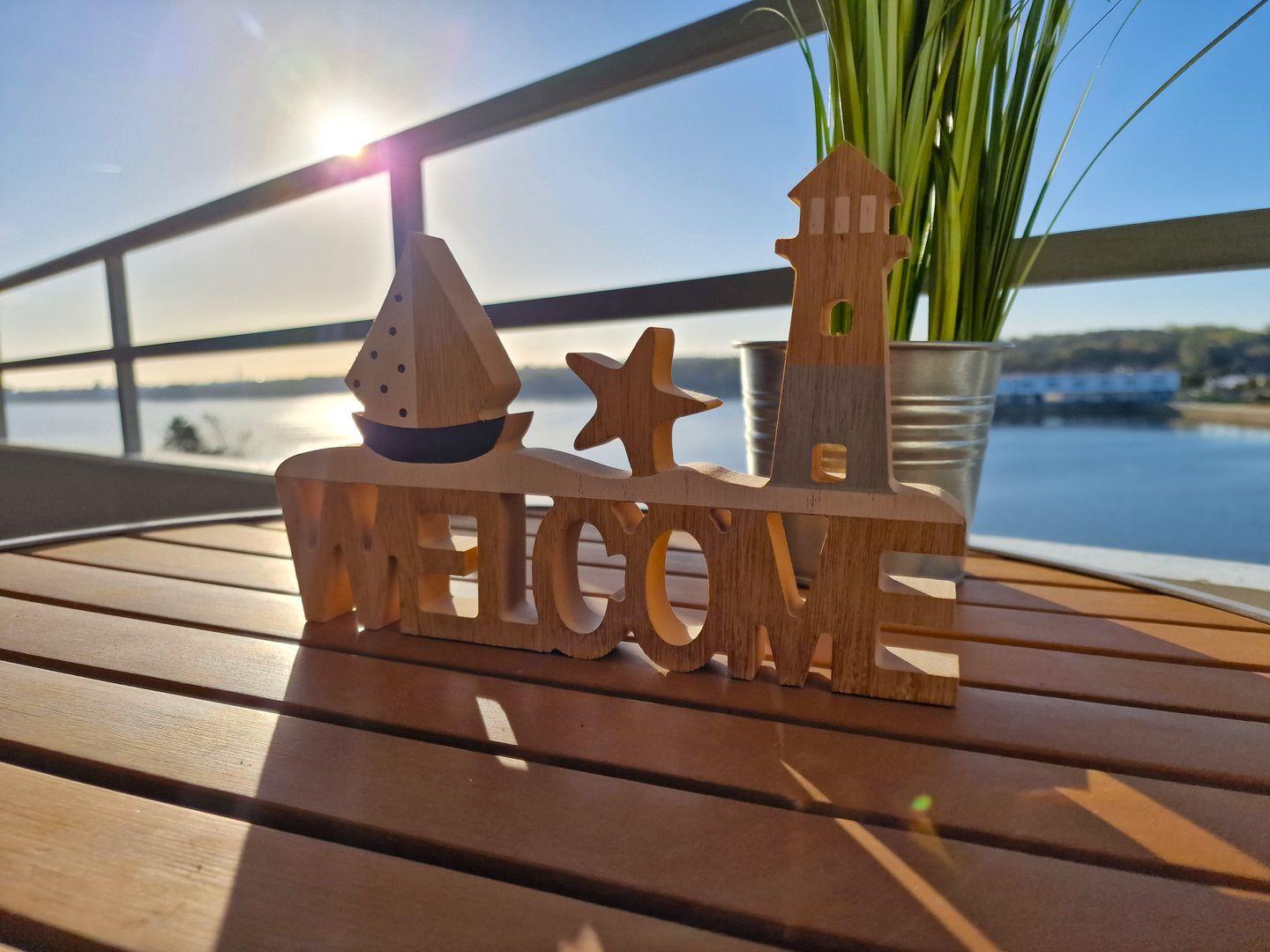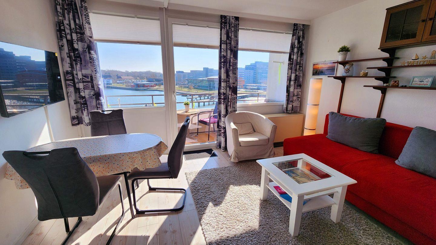 Helle und modern eingerichtete Ferienwohnung in der 4. Etage mit Balkon zur Südseite und schönem Blick über den Binnensee.