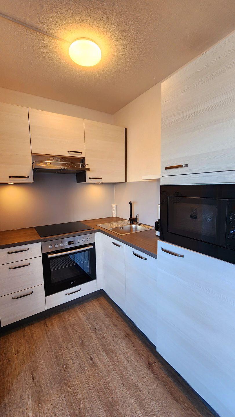 Das offene Wohnkonzept verbindet das Wohnzimmer mit der neuen, voll ausgestatteten Küche (Einbau März 2025), die über zahlreiche Annehmlichkeiten verfügt, wie z.B. ein Cerankochfeld, einen Backofen, eine Spülmaschine, eine Mikrowelle sowie Kaffeemaschine und Wasserkocher. Hier können Sie Ihre Lieblingsgerichte zubereiten und diese gemütlich im Essbereich oder auf dem Balkon genießen, der mit Sitzgelegenheiten ausgestattet ist.