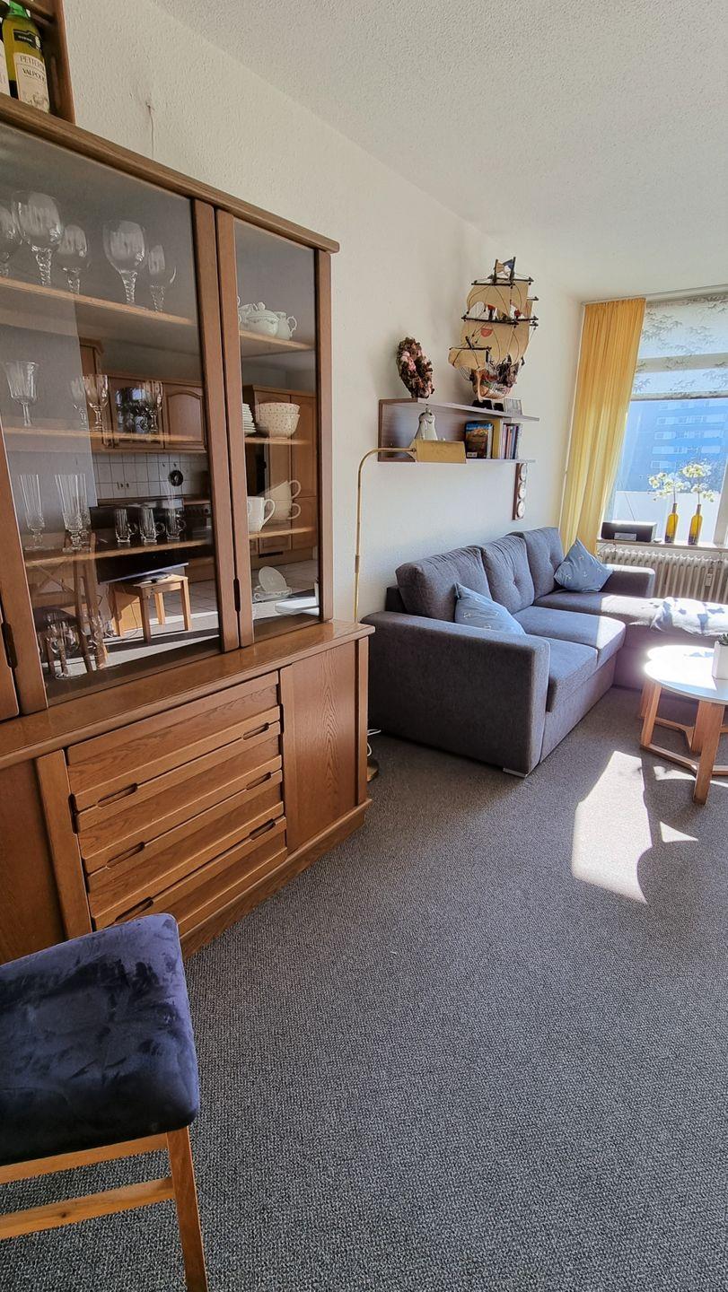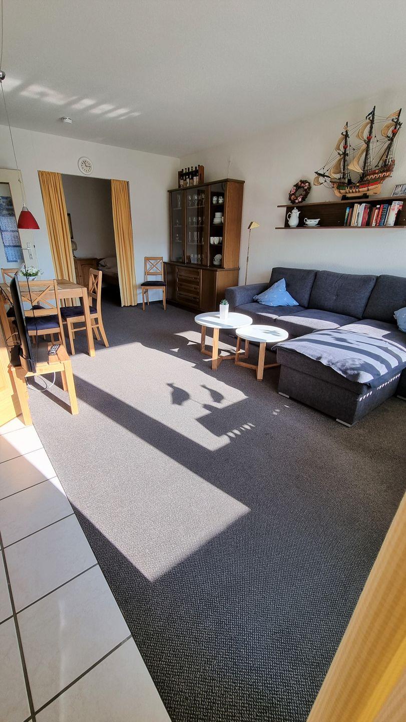 Die in warmen Farben und mit Holzmöbeln eingerichtete 2-Zimmer-Wohnung bietet großzügig Platz für zwei Ostsee-Liebhaber.
