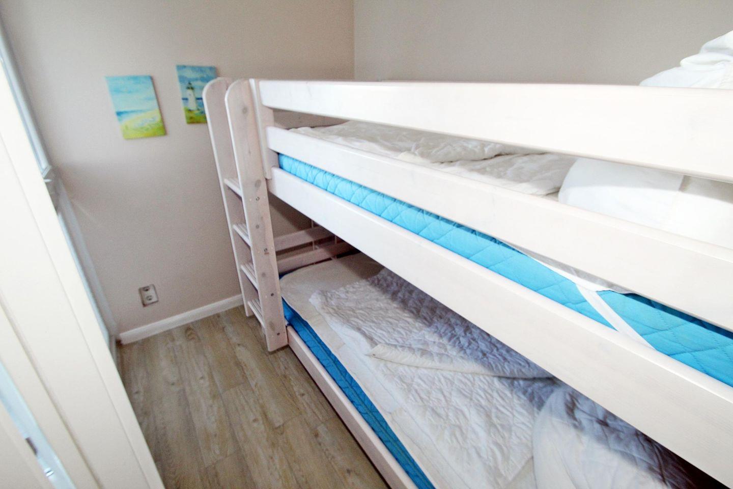 Schlafbereich mit zwei Einzelbetten, Kinderzimmer mit Etagenbett.