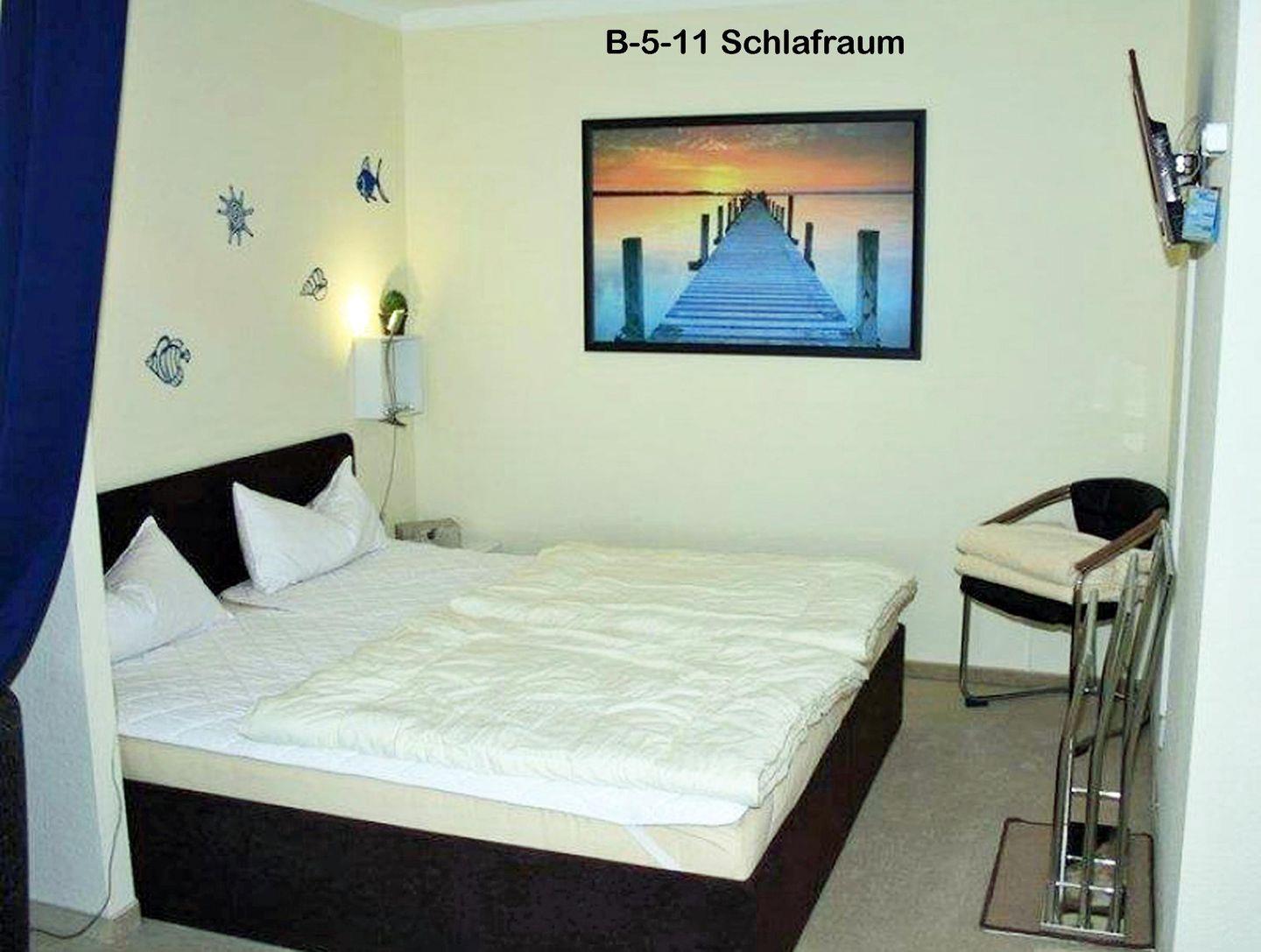 Im Schlafbereich befindet sich ein weiterer 80-er Flachbild-TV inkl. DVD-Player.