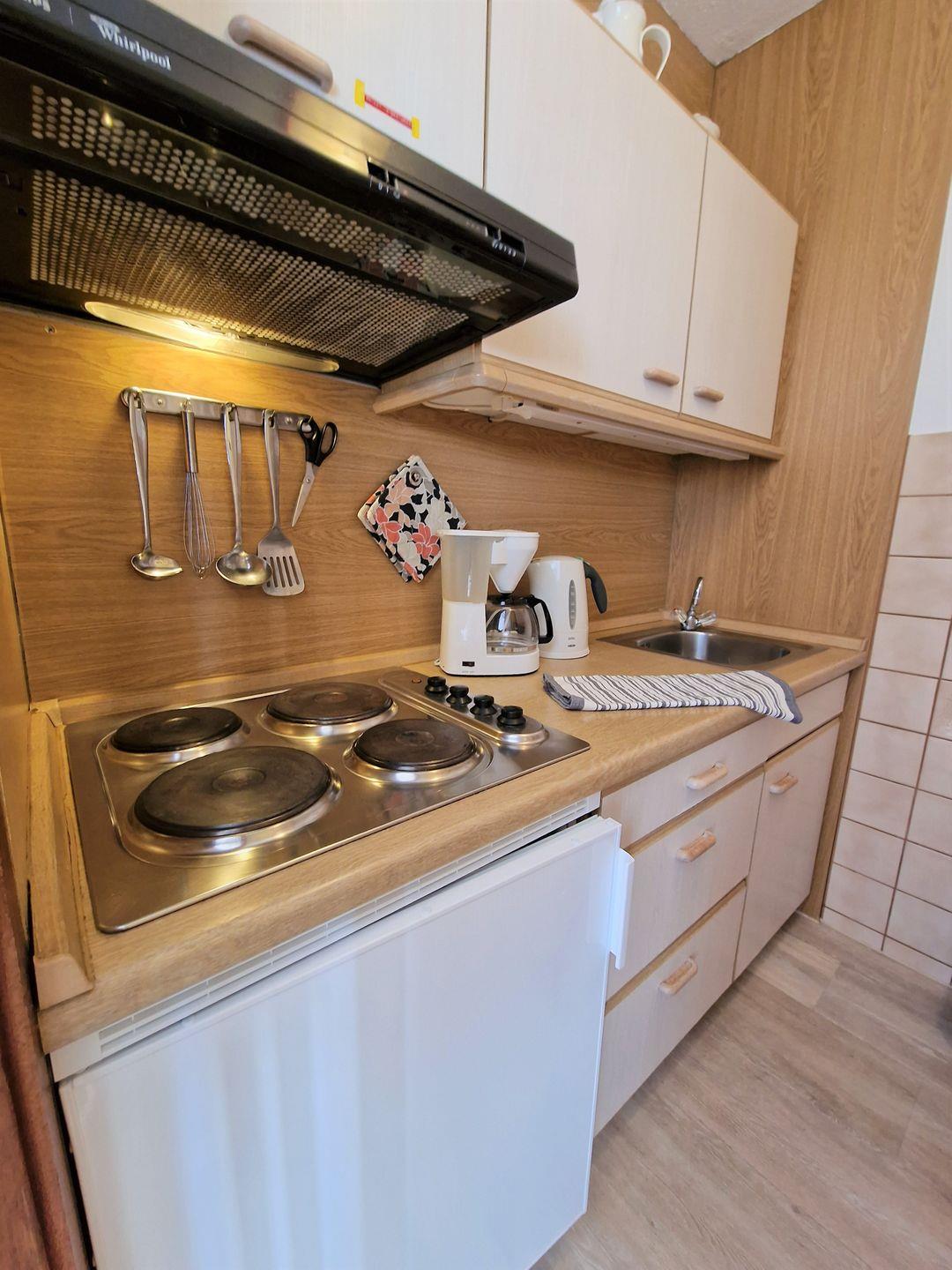 Einfache Ferienwohnung in der 5. Etage mit Balkon Südseite und Blick zum Binnensee Richtung Yachthafen.