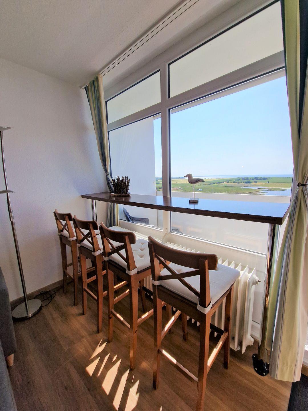 Der Balkon verfügt über Sitzgelegenheiten - von hier aus genießen sie einen außergewöhnlich beeindruckenden Ostseeblick!