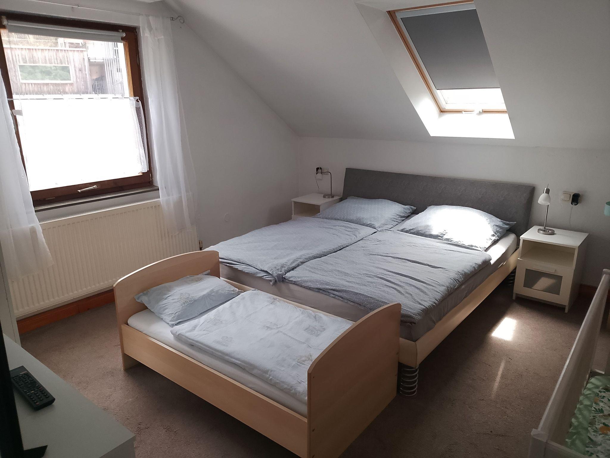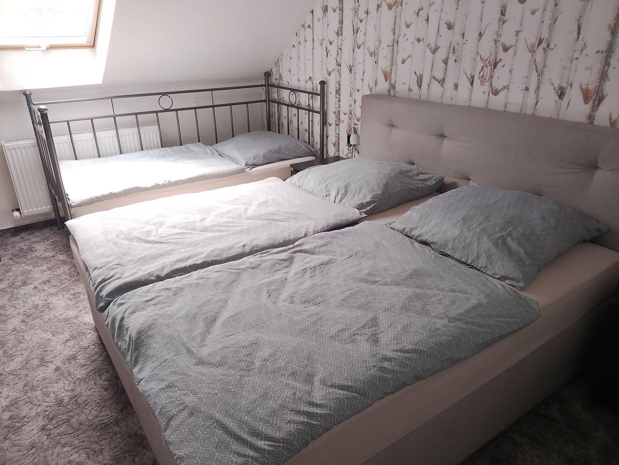 Unsere gemütliche ca.70 qm große Ferienwohnung im Leinleitertal verfügt über 2 Schlafzimmer mit je einem Doppelbett davon ein Boxspringbett sowie einem Smart TV.