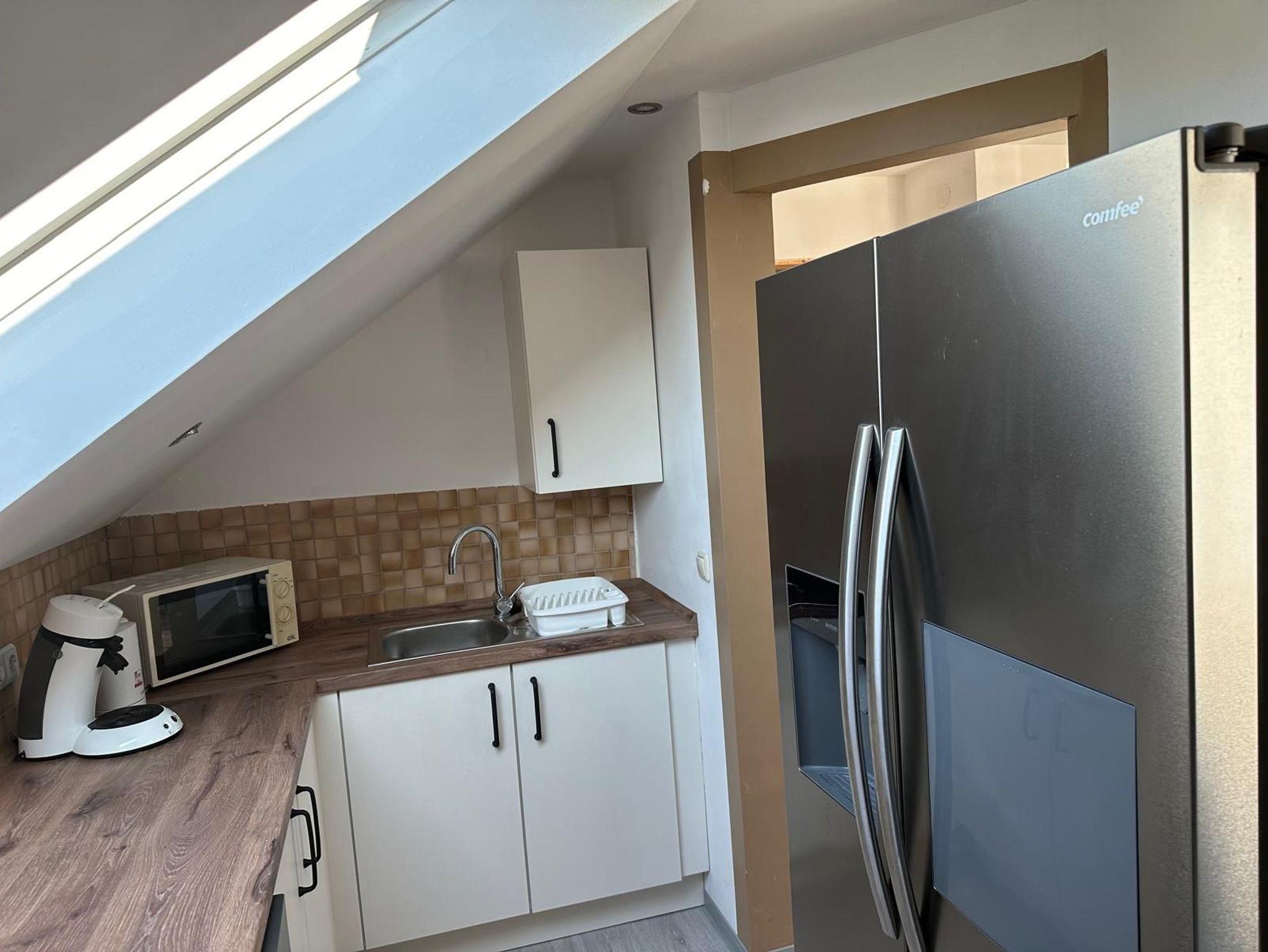 Die Küche ist mit Backofen, Cerankochfeld, Mikrowelle, Kaffeemaschine, Spülmaschine und Side by Side Kühlschrank mit Eiswürfelbereiter ausgestattet. Das Badezimmer verfügt über eine Badewanne sowie über ein separates WC.