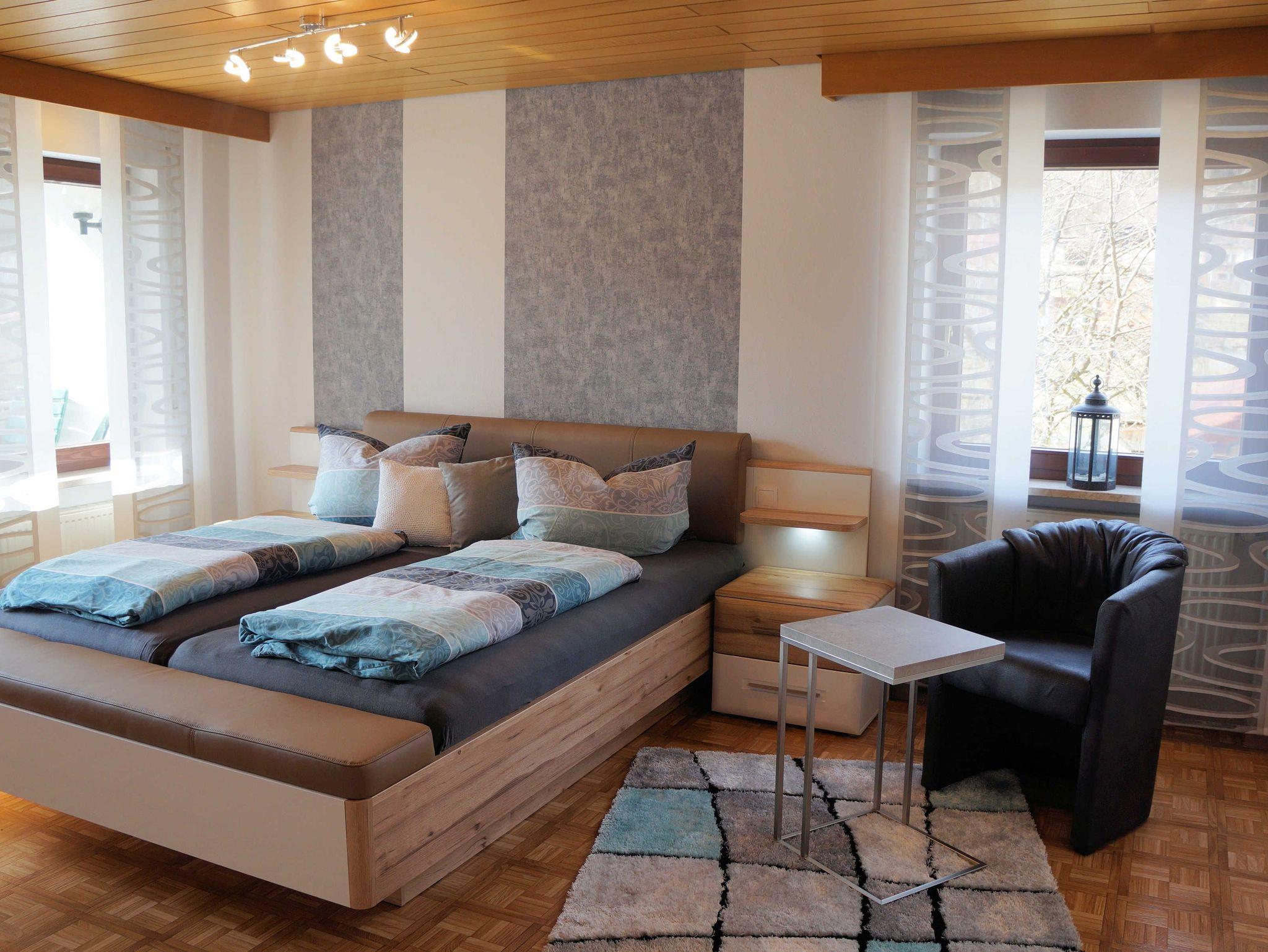 Die Wohnung liegt direkt am Rad- und Wanderweg und der Einstieg zu den drei Mountainbike-Strecken befindet sich in der Nähe (ca.1km). Ein Kinderspiel- und Fußballplatz können problemlos zu Fuß erreicht werden. Die 95m² große Ferienwohnung im Erdgeschoss verfügt über zwei Doppel-Schlafzimmer, Wohnzimmer, Essküche, Bad und Balkon. Kinder- oder Zustellbett können auf Wunsch bereitgestellt werden. Parkplätze befinden sich direkt am Haus und Fahrräder können verschlossen eingestellt werden. WLAN selbstverständlich kostenlos. Gerne können Sie auch unseren großen Garten nutzen, zum Entspannen oder für einen Grillabend mit überdachtem Bereich. WIr freuen uns Sie als unsere Gäste begrüßen zu dürfen.