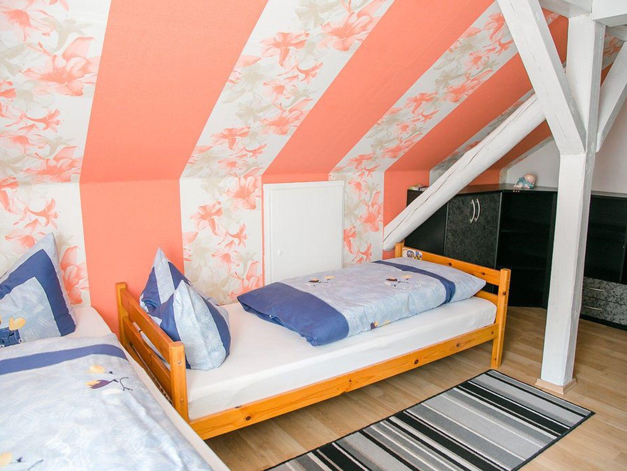Im Dachgeschoß sind zwei Schlafzimmer, ein Bad und ein Wohnzimmer mit Holzofen. Das Bad besitzt eine Dusche und eine Toilette. Auf Anfrage können wir Ihnen gerne gegen Gebühr 4 weitere Zustellbetten sowie 3 Babybetten zur Verfügung stellen!