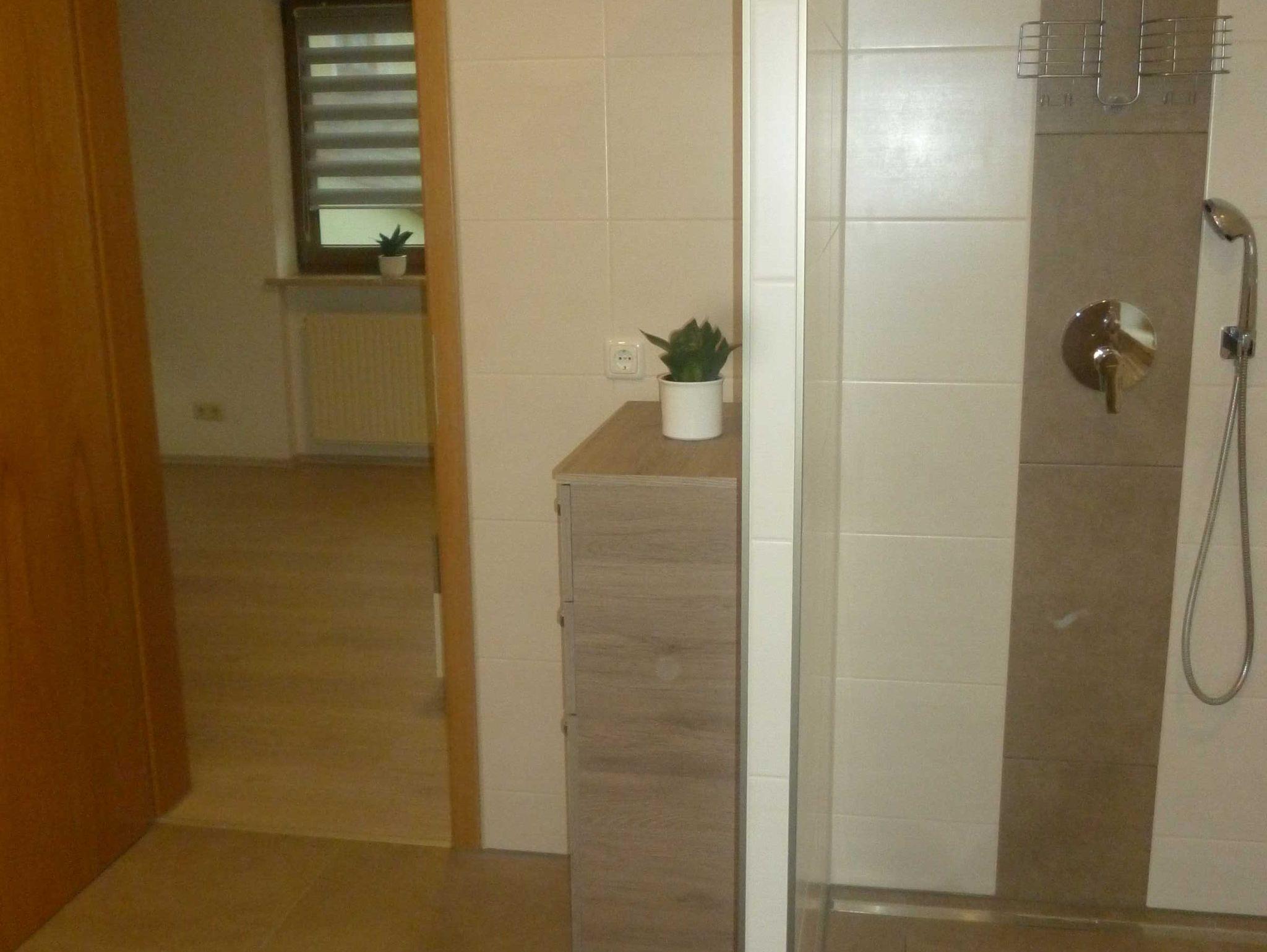 Doppelzimmer mit Frühstück im 2. Stockwerk (nur über Treppe erreichbar) mit 180x200er Bett, Laminatboden und Balkon. Das dazugehörige, geräumige, geflieste Bad ist mit einer begehbaren Dusche und WC ausgestattet. Reichhaltiges Frühstücksbuffet inklusive. Parkplätze und E-Ladestation (Wallbox) am Haus vorhanden.
