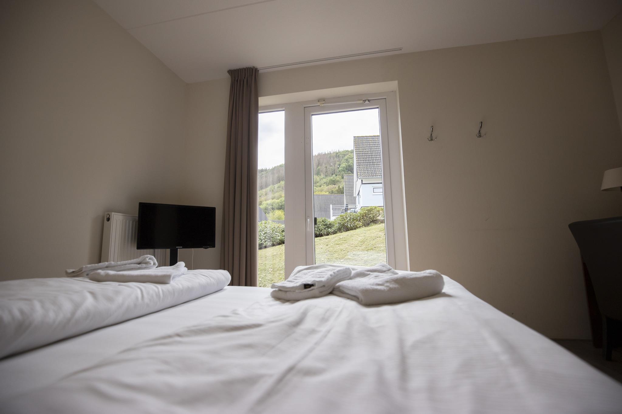 Denne villa ligger i det naturskønne Eifeler Tor Resort og blander komfort og charme med moderne detaljer. Fordelt på flere etager tilbyder huset indbydende opholdsområder, et fuldt udstyret åbent køkken og hyggelige loungeområder til at slappe af. Gå ud på din private terrasse eller balkon med en fantastisk udsigt over Rursee. Gæsterne kan nyde de fælles indendørs og udendørs pools, en afslappende jacuzzi og endda legeredskaber til børn. Familier vil finde høje stole og essentielle ting klar, mens kæledyr er velkomne - perfekt til naturskønne vandreture og udendørs eventyr i bakkerne. Omgivet af Nordrhein-Westfalens skønhed placerer villaen dig i nærheden af Heimbachs historiske slot, Rursee-søen og stierne i Eifel Nationalpark. Vandre gennem frodige skove, cykl ad betagende ruter, eller tag en bådtur på søen. For kulturelskere tilføjer det nærliggende Mariawald Abbey og Heimbach Kunstakademi et unikt lokalt præg. Kæledyrsejere vil elske at slentre langs søstier og åbne enge med deres pelsede venner. Efter en dag med udforskning kan du opdage autentiske tyske smagsoplevelser i nærheden. Nyd solide måltider på Restaurant Zur Post i Heimbach, traditionelle snacks på Klostergasthof Mariawald, eller spis ved søen med udsigt på Café am See. Bemærk: I Dormio Resort Eifeler Tor vil den indendørs swimmingpool være lukket fra mandag den 17. november til torsdag den 20. november 2025. Årsagen til denne lukning er det årlige vedligeholdelsesarbejde. Fredag morgen den 21. november vil den indendørs swimmingpool være tilgængelig for gæster igen. Turistskat er 7% af lejeprisen, der skal betales i parken.