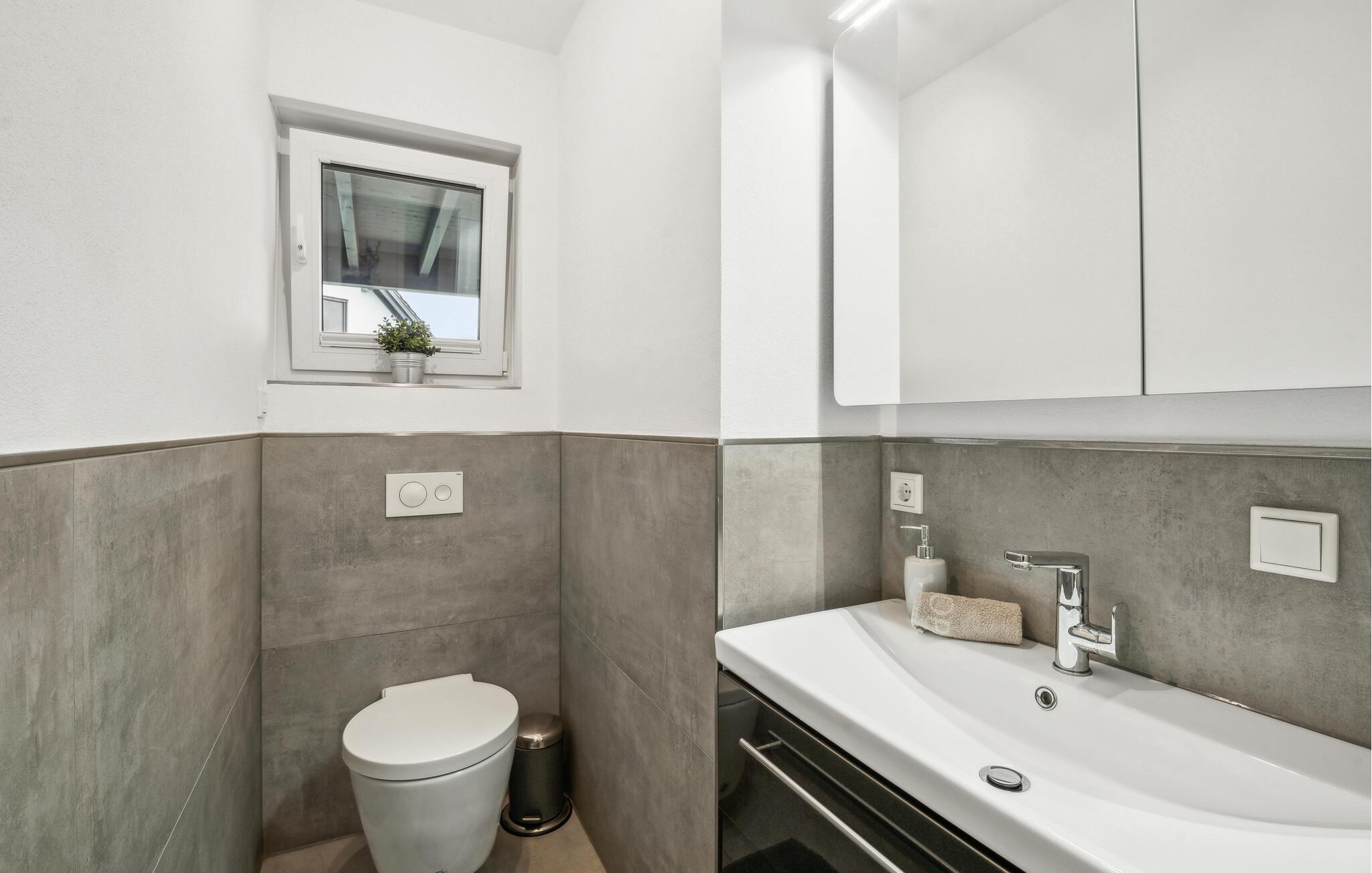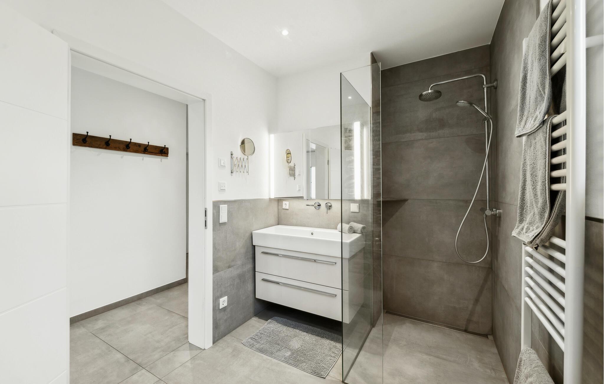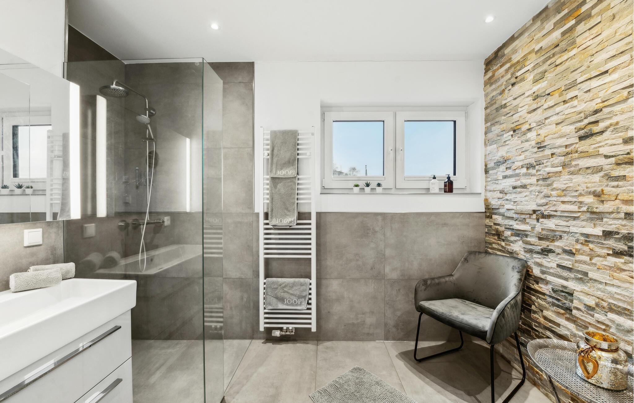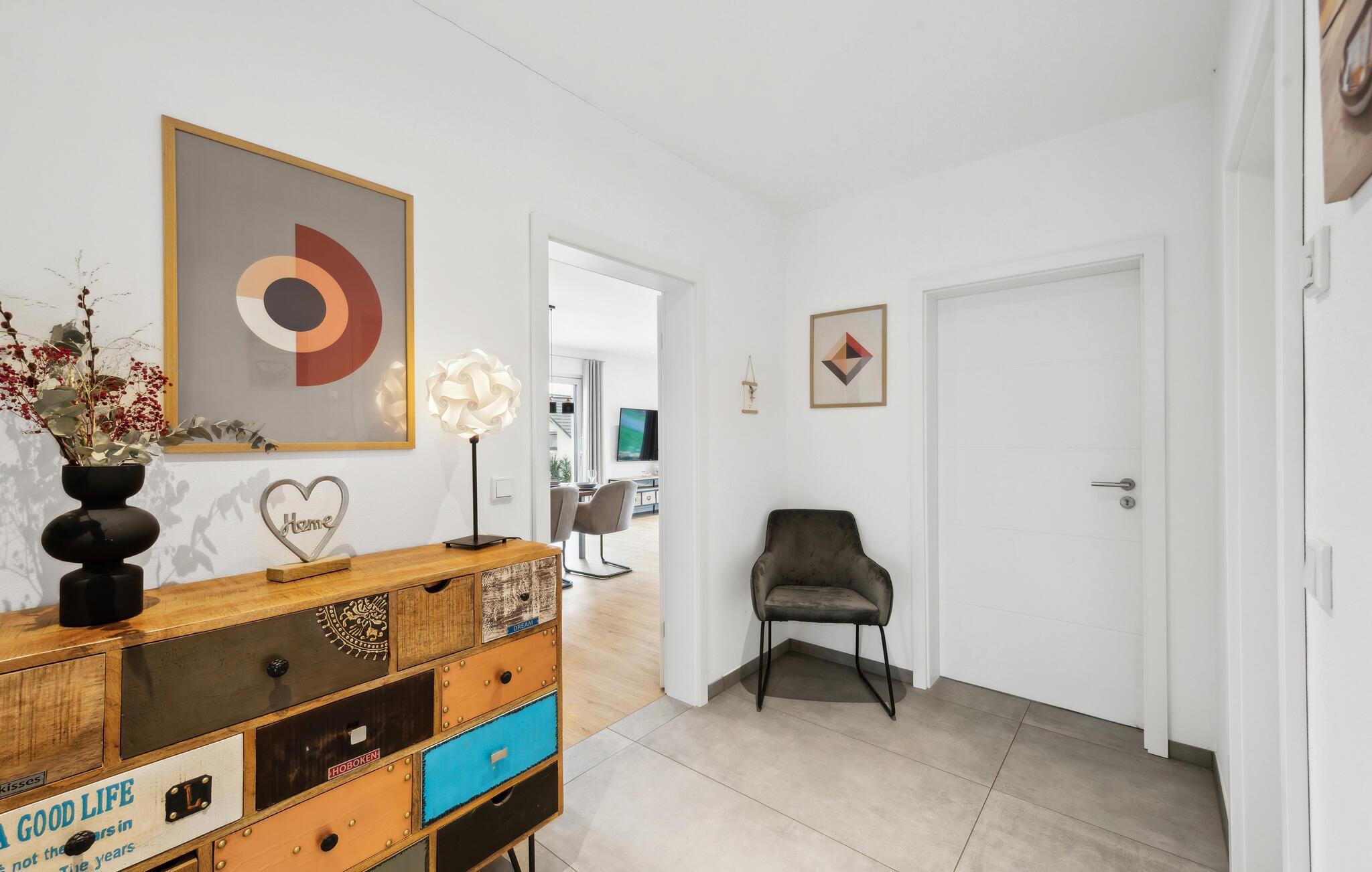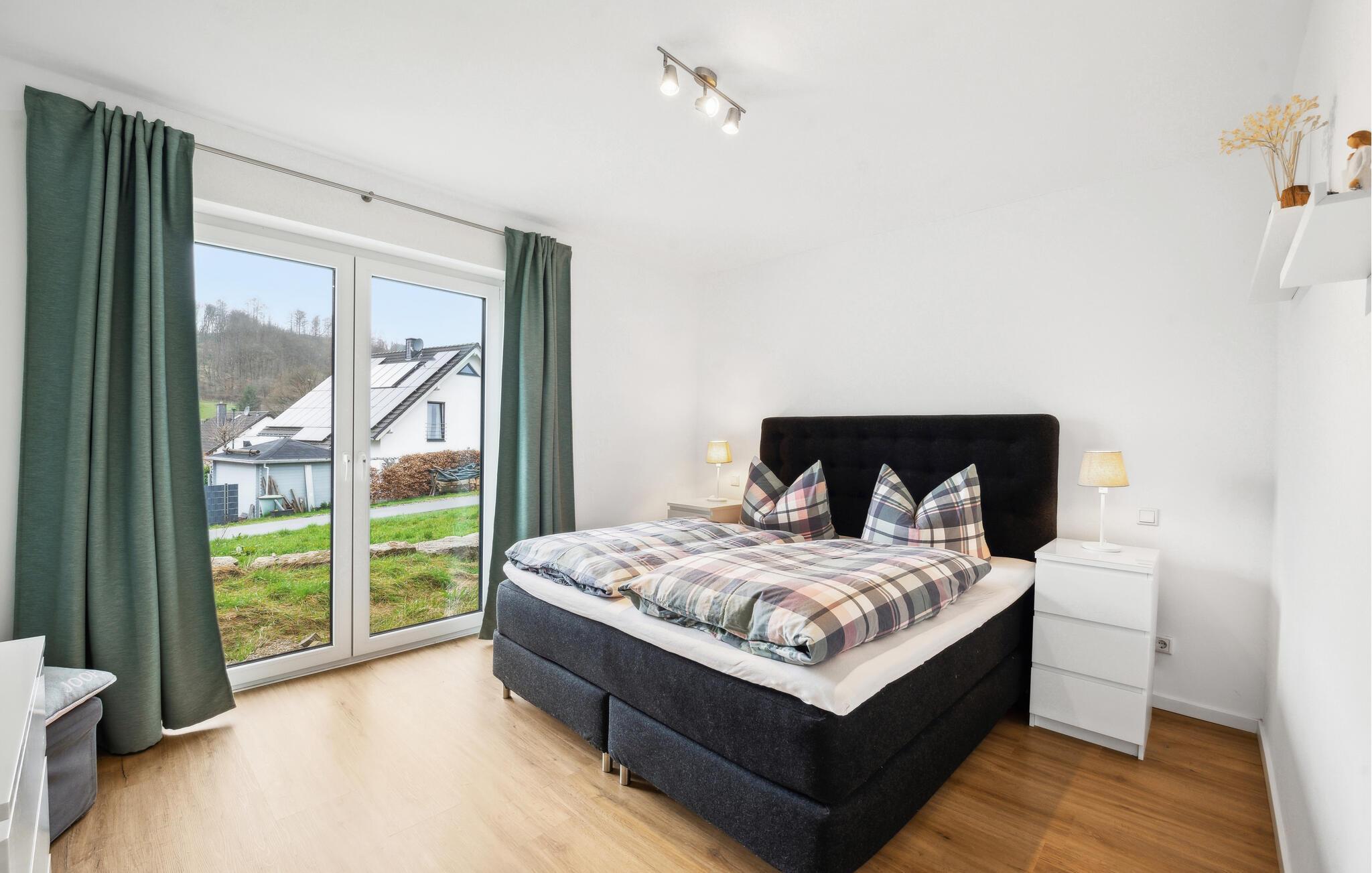 I denne indbydende bolig får I alt, I behøver til nogle dejlige uger i det vestlige Tyskland. Indretningen fremtræder lyst og venligt med flotte detaljer og gulv-til-loft-vinduer, der giver et lækkert lysindfald og udsigt til omgivelserne. I den åbne stue kan I tage jer god tid til tingene og gøre madlavningen til et hyggeligt fælles projekt, inden I runder aftenen af med brætspil eller en god film i sofaen.