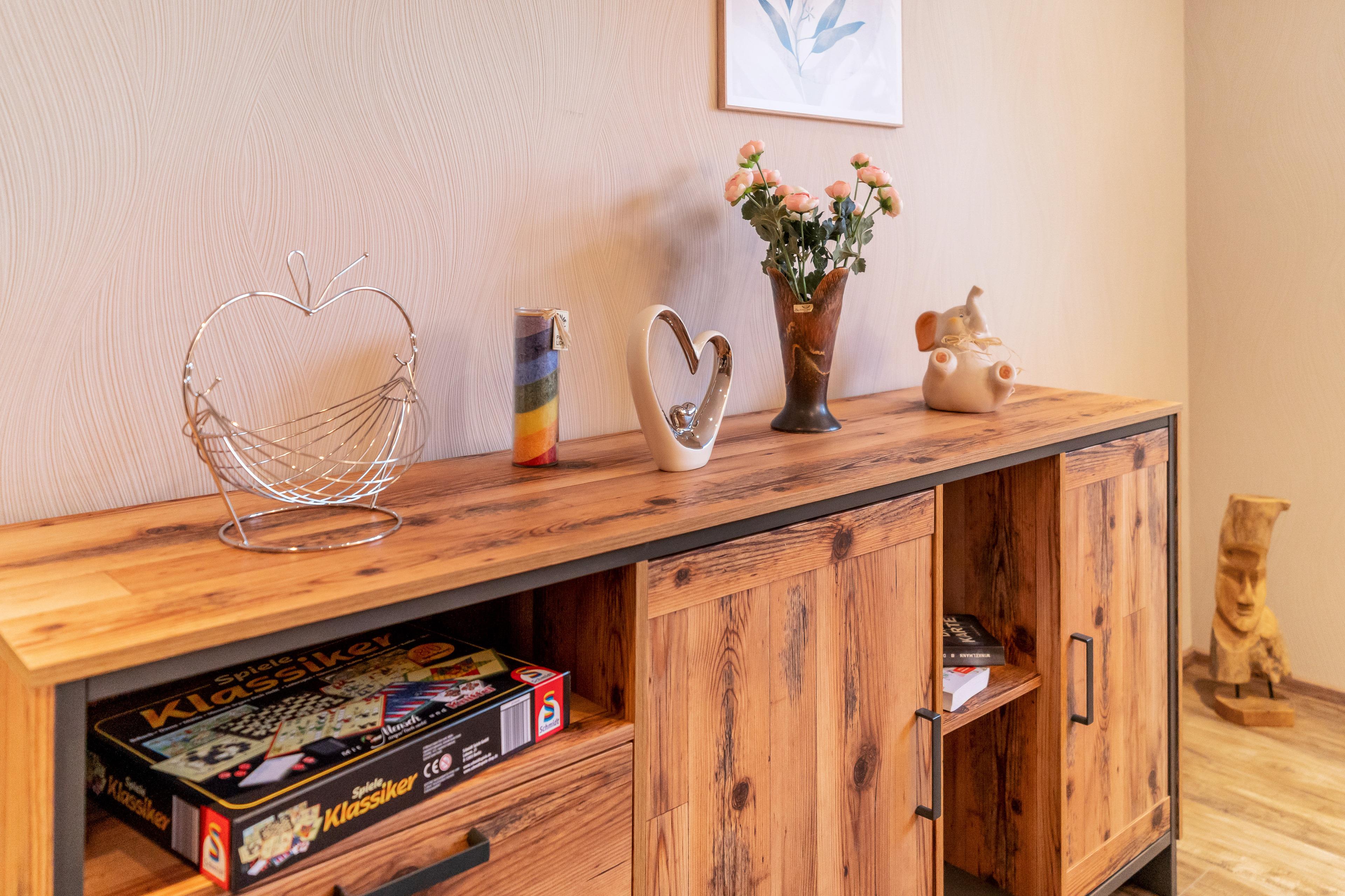 Die Wohnung erstreckt sich über zwei Etagen. Im Untergeschoss befindet sich eine separate Küche mit Einbauküche und einem Tisch; ein offenes Wohn- und Esszimmer mit gemütlichem Sofa, TV und einem großen Esstisch und ein Badezimmer mit großer ebenerdiger Dusche und Badewanne. Die beiden Schlafzimmer mit jeweils einem Doppelbett (1,80x2,00 m) befinden sich im Obergeschoss.