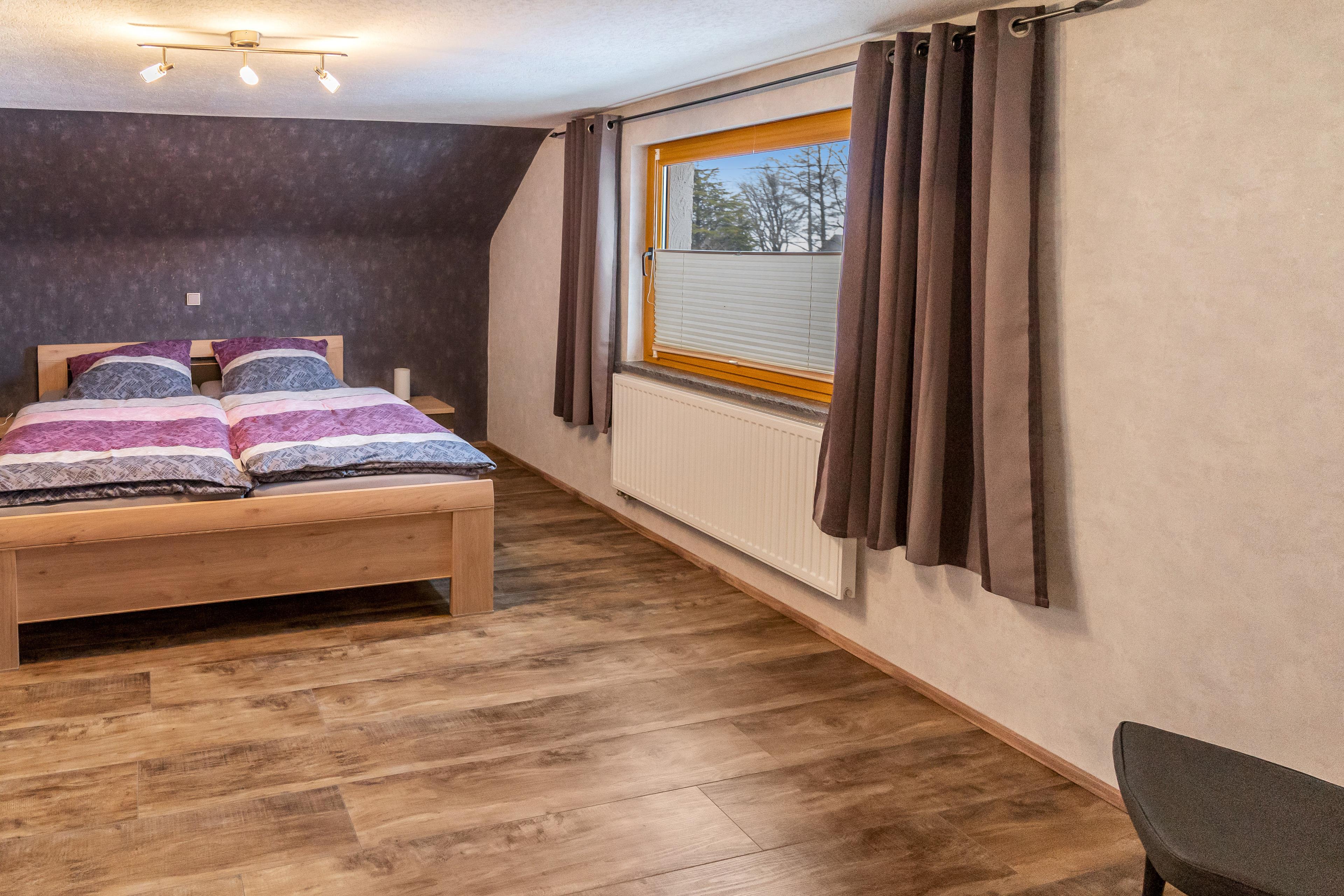 Unsere Ferienwohnung Eifelhöhe Pützer befindet sich in einem in 2017 komplett renovierten Einfamilienhaus. Sie ist über eine breit ausgebaute 4-stufige Außentreppe zu erreichen und bietet Platz für bis zu vier Personen.
