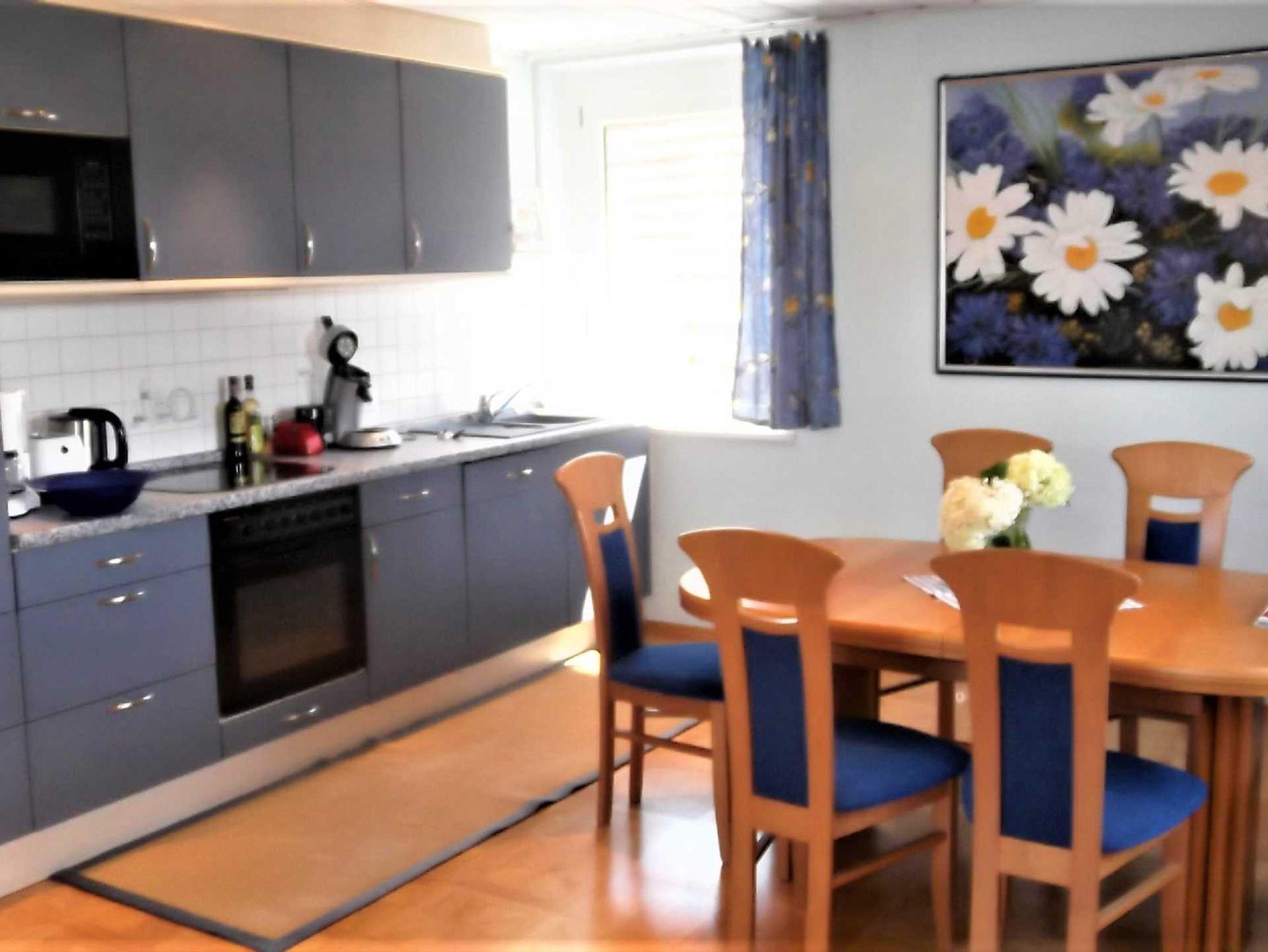 Hochwertig ausgestattete Ferienwohnung, ca. 70 qm Wohnfläche, mit offenem Wohn-/Küchenbereich, Traumbad, separatem Schlafraum in der Galerie und Balkon (Raucherbereich). Zwei ausziehbare Zweisitzer bieten bis zu insgesamt 6 Gästen Platz. Die FeWo ist über Außentreppe und separaten Zugang erreichbar. Freisitzfläche im Garten steht zur Verfügung.