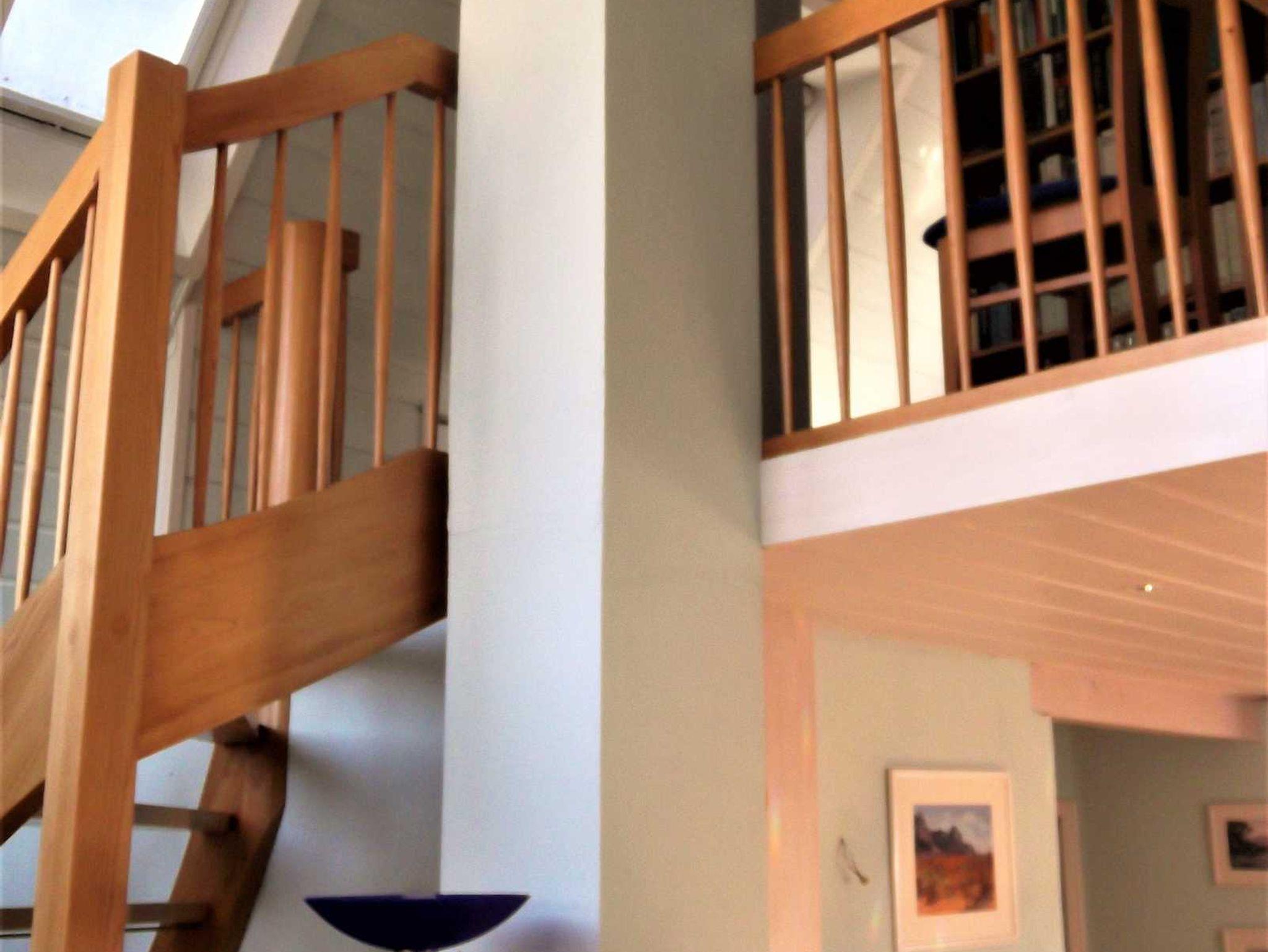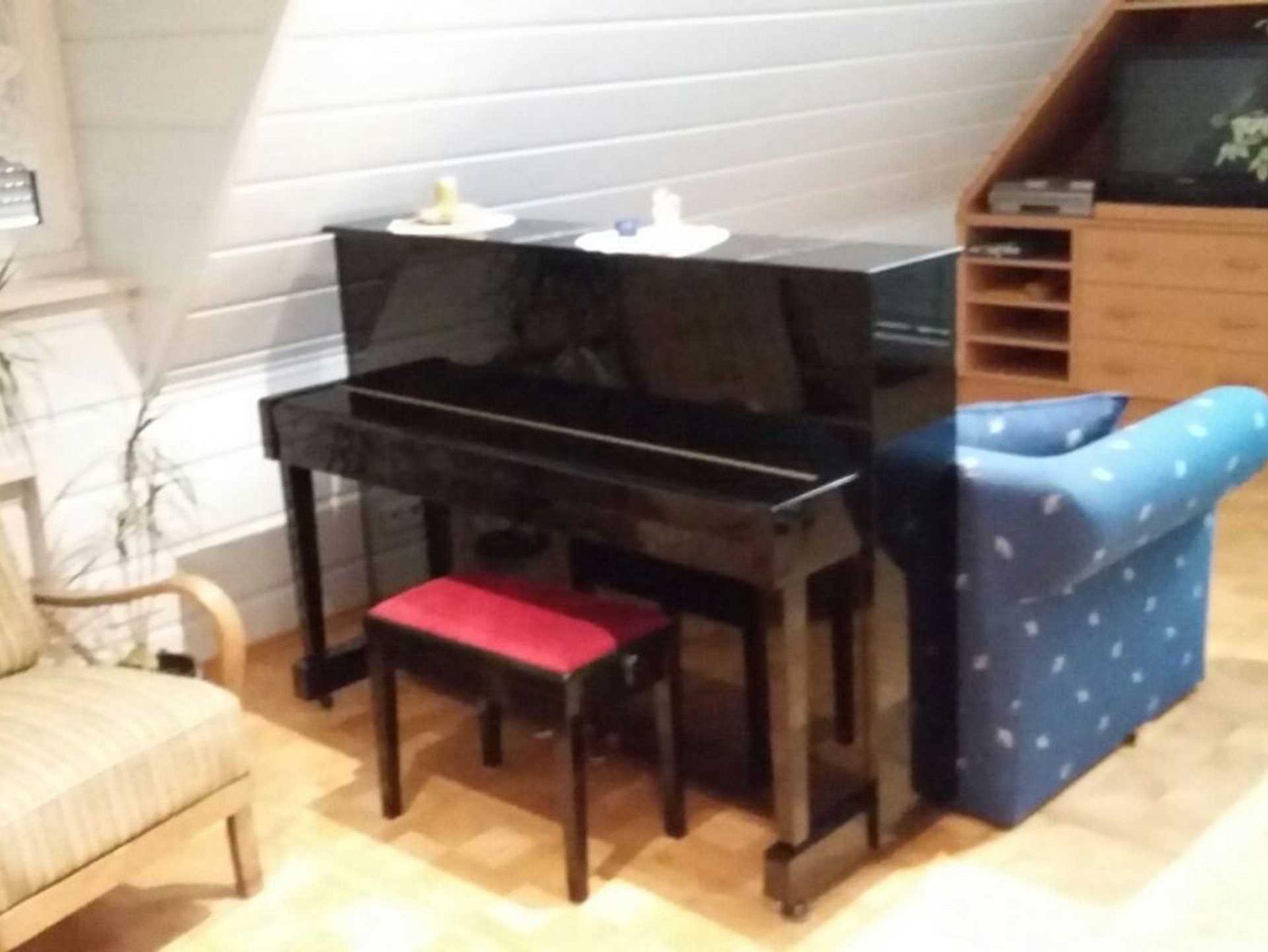 Offener Wohn-/ Küchenbereich, separates Schlafzimmer im Dachgeschoss mit zweitem flat screen TV, Westbalkon, Klavier.