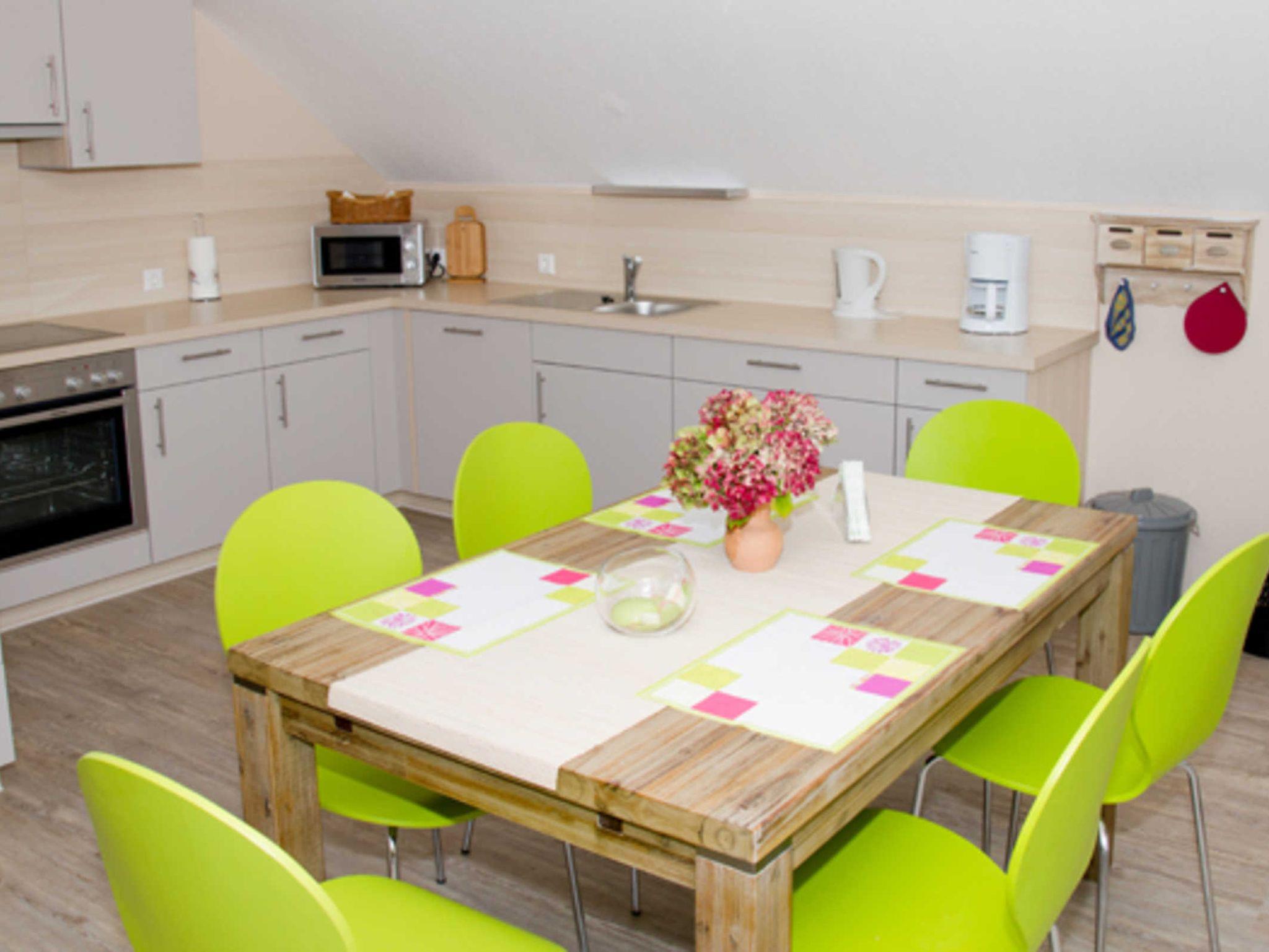 3-Zimmer Ferienwohnung, 87 qm, hell, ruhige Lage* 2 DZ (+ Babybett auf Anfrage)* Bad mit Wanne / Dusche + WC* Wohnbereich mit Eckcouch* LED-TV 40”, Internet-Radio mit Bluetooth-Funktion* Essbereich* Einbauküche mit Kühlschrank, Geschirrspüler, Mikrowelle, Kaffeemaschine (Filter und Pad), Wasserkocher, Toaster, Eierkocher, Geschirr, Geschirrtücher* Bettwäsche und Handtücher* 2 Balkone. Die Wohnung bietet Platz für 1-5 Personen.